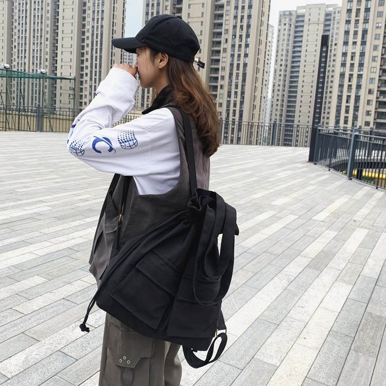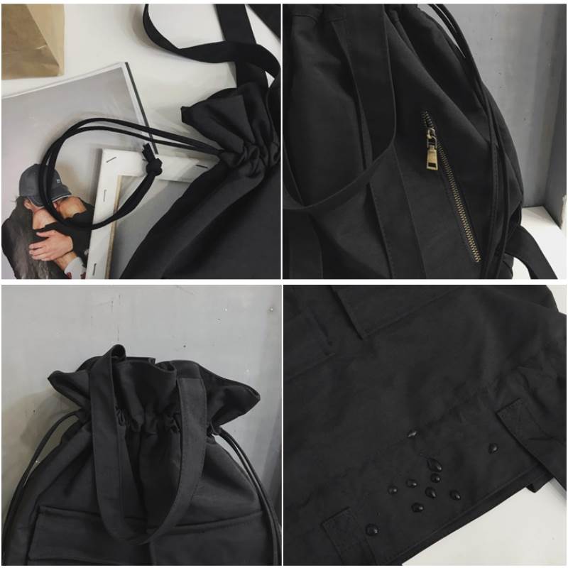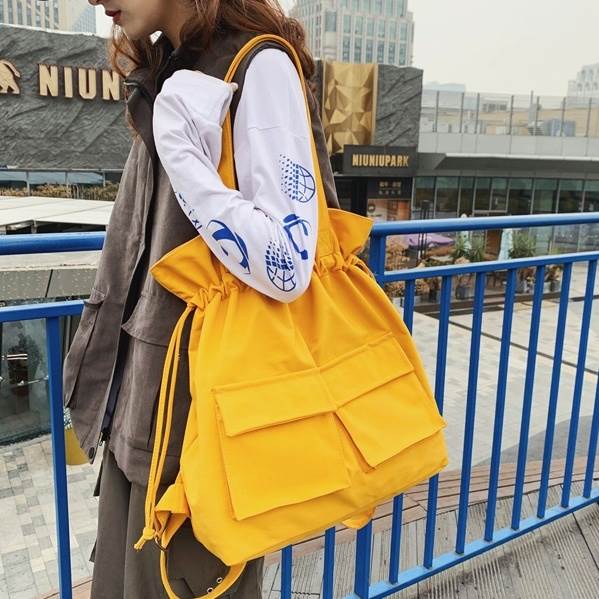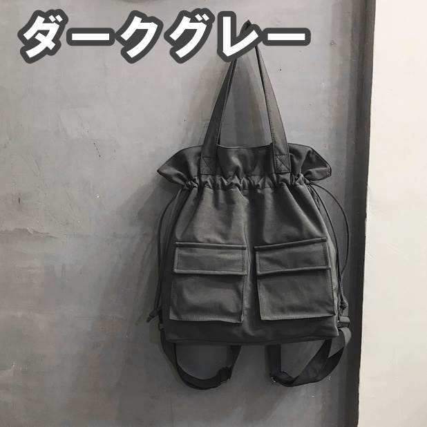 4色 バッグ リュック バッグパック トートバッグ 2WAY かばん 鞄 bag 巾着 巾着型 きんちゃく ポケット 大きめ 大容量 入れやすい A4 iPad 教科書 キャンバス カジュ タブレット