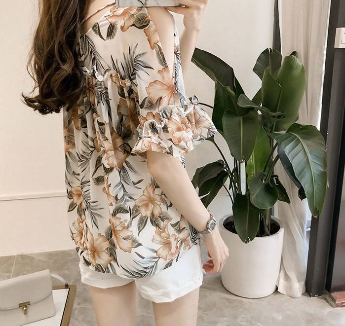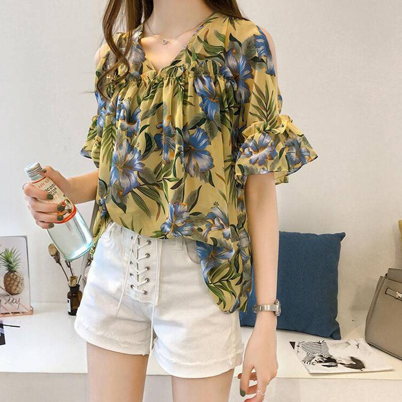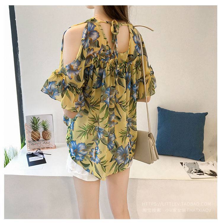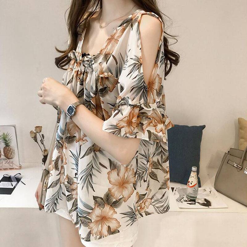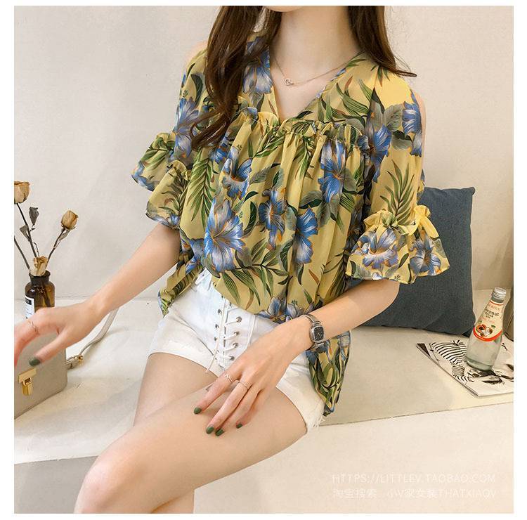 トップス レディース シャツ ブラウス オフショルダー 大きいサイズ 2l 3l 4l ゆったり 可愛い 肩出し 花柄 半袖 シフォン ボタニカル 体型カバー 細見え リゾート ファ 着痩せ