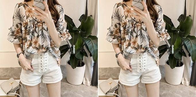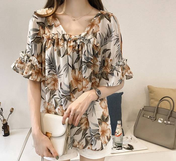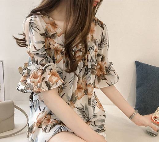 超ミニ 花柄 ブラウス 長袖 トップス シフォ