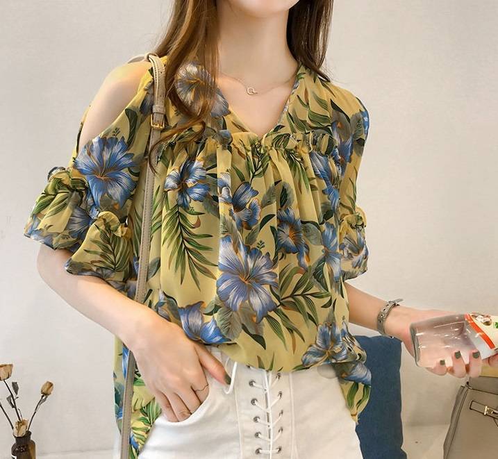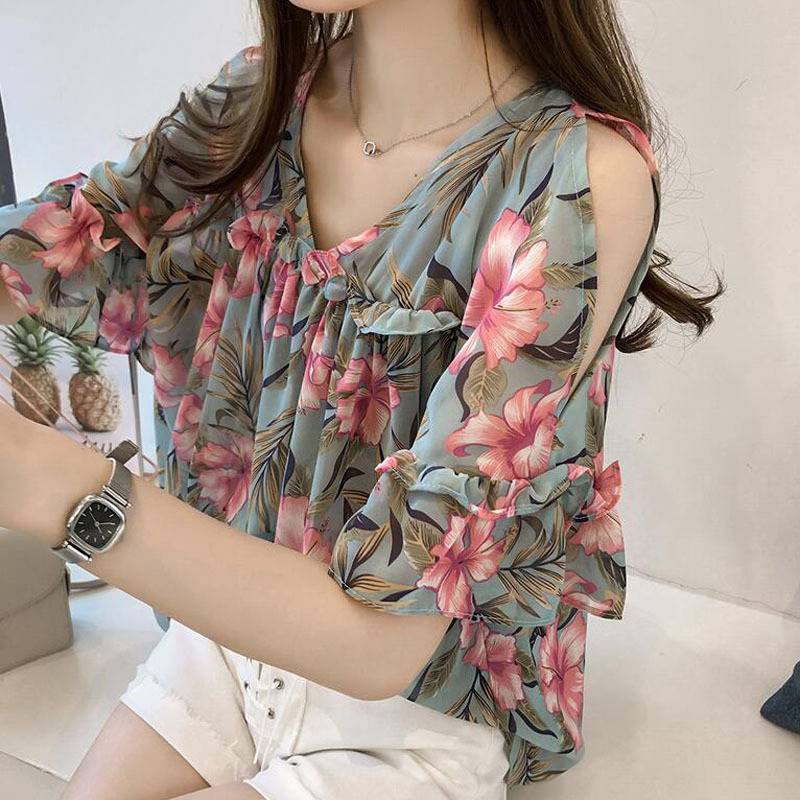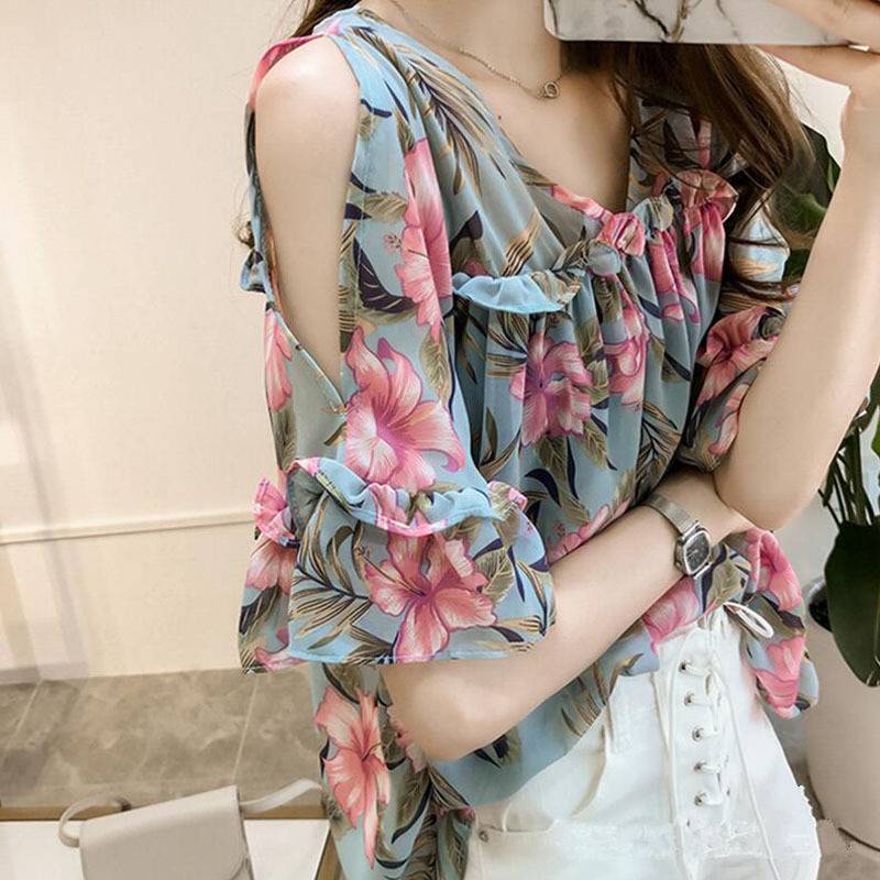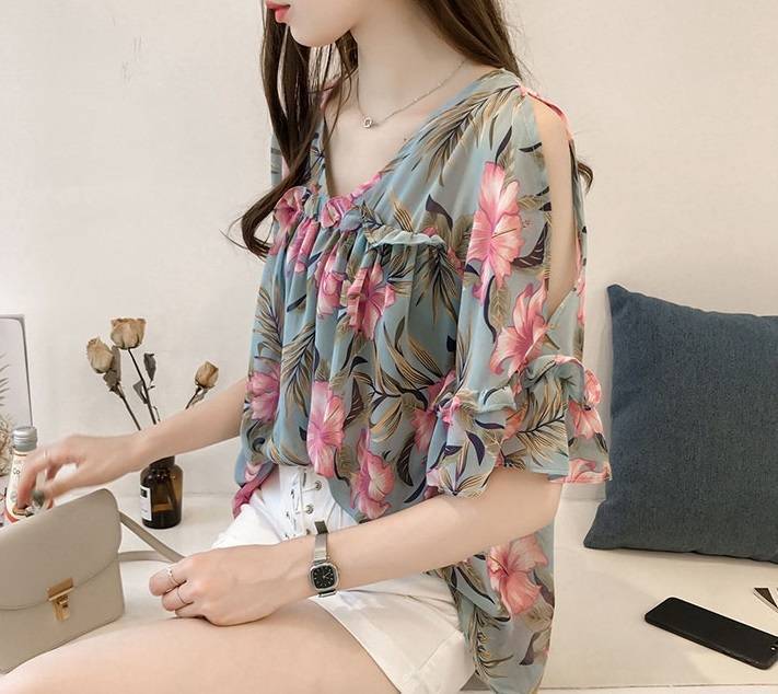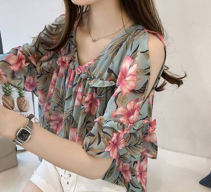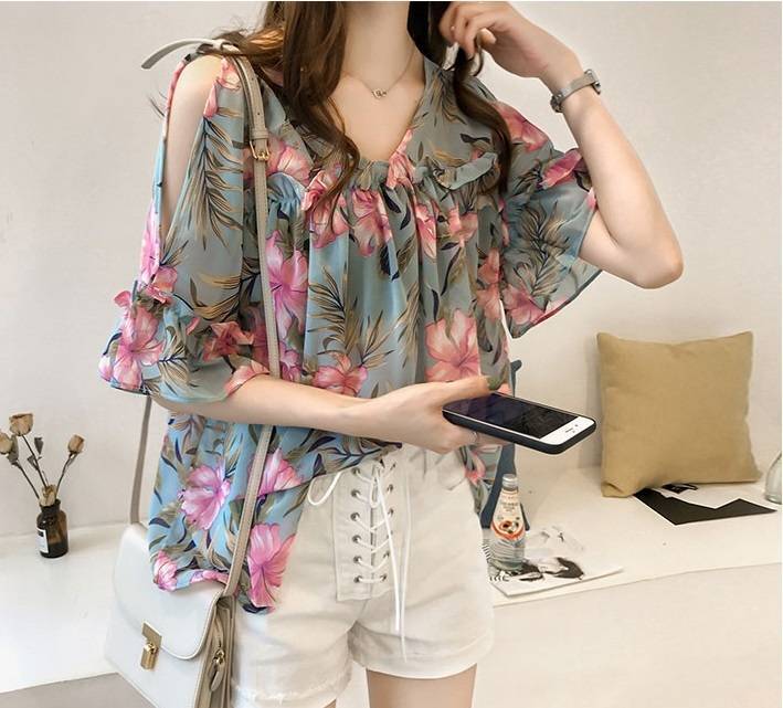 花柄 ブラウス シャツ 肩出し ガーリー きれ