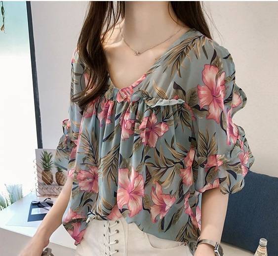 3色 花柄 ブラウス シャツ 華やか シフォン