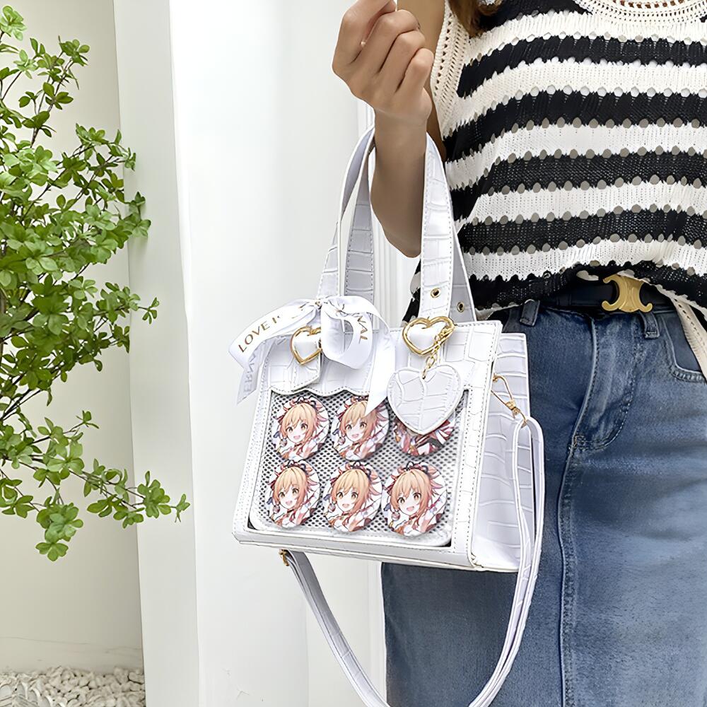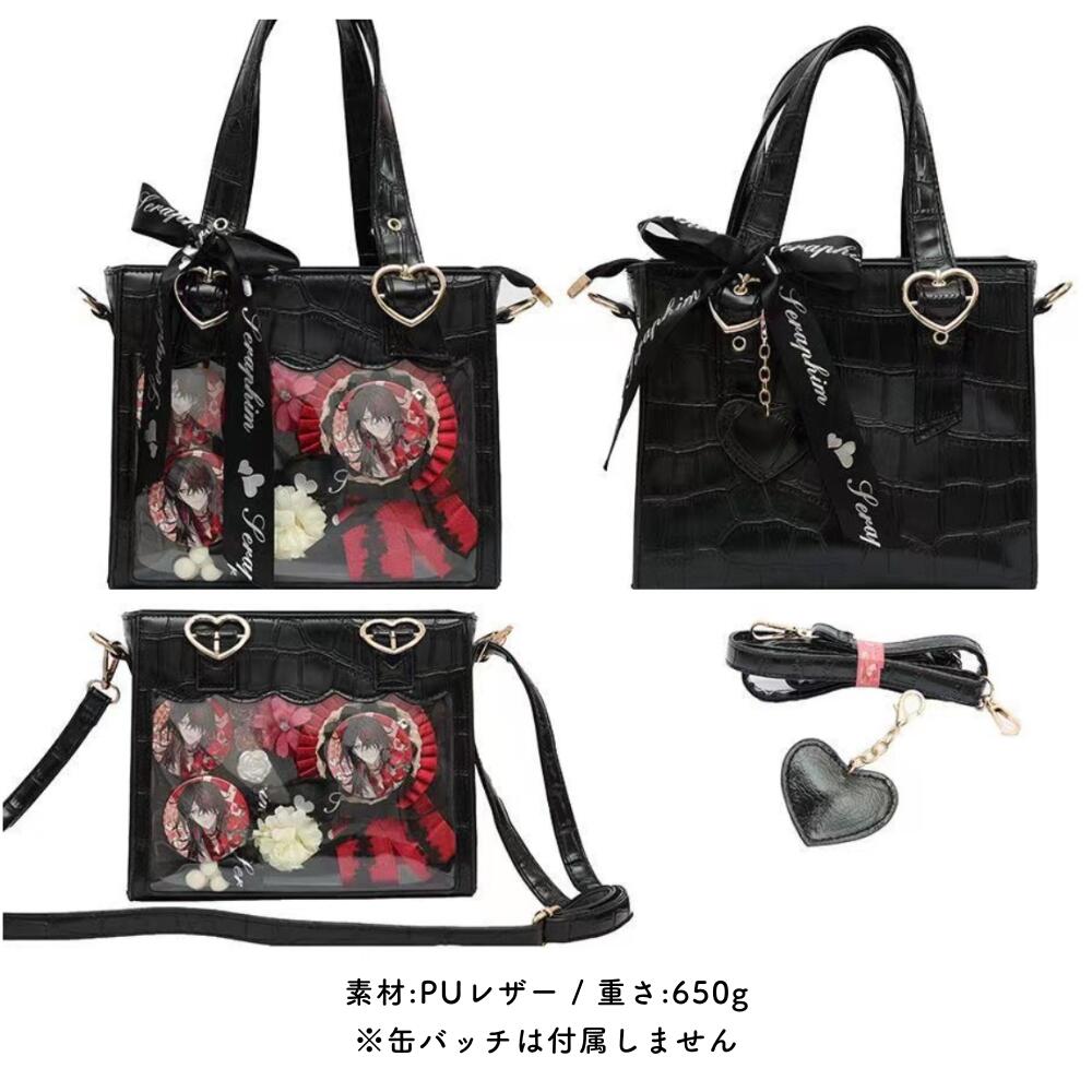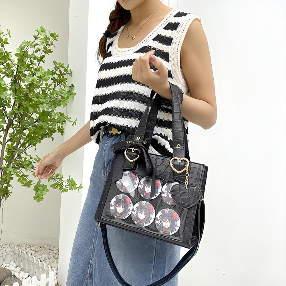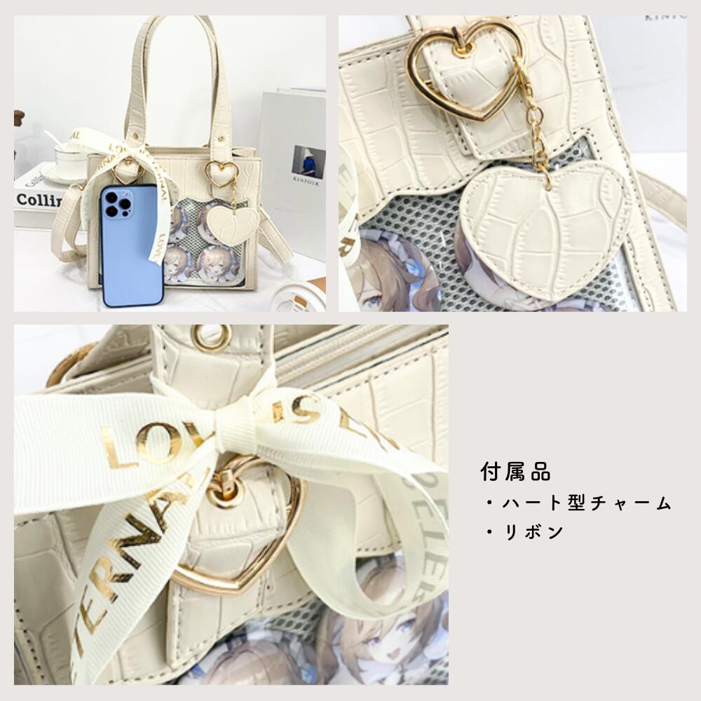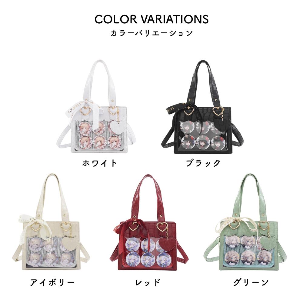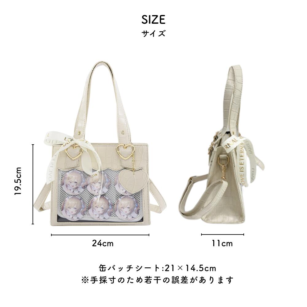 オタクバッグ 2WAY 3WAY トート ショルダー ハンド 缶バッジ ぬいぐるみ 収納 おしゃれ 推し活 クリアポケット 透明 クロコダイル調 ハートデザイン 推し色 小さめ おしゃれ かわいい 誕生日 プレゼント クリスマス バレンタイン ホワイトデー お祝い プチプラ ファッション 女の子 女子 小学生 中学生 高校生 大人 a3 a4 a5 b5 リボン 大容量 75mm ちいさめ
