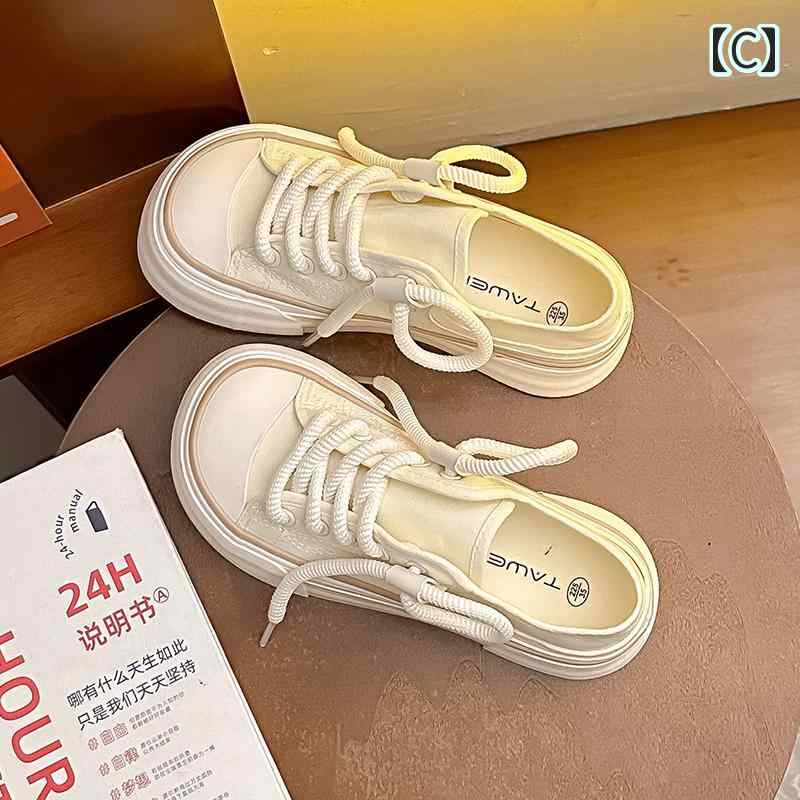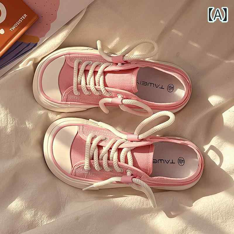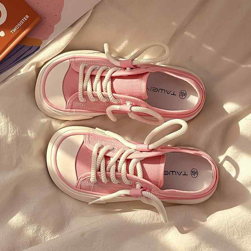 キャンバス スニーカー レトロ 可愛い 個性的 帆布 シューズ 桜 ピンク 黒 ブラック 白 ホワイト 厚底 運動靴 オルチャン系 女子 太紐 ユニーク 映える ステッチ 紐デザイン ニッチ 厚底靴