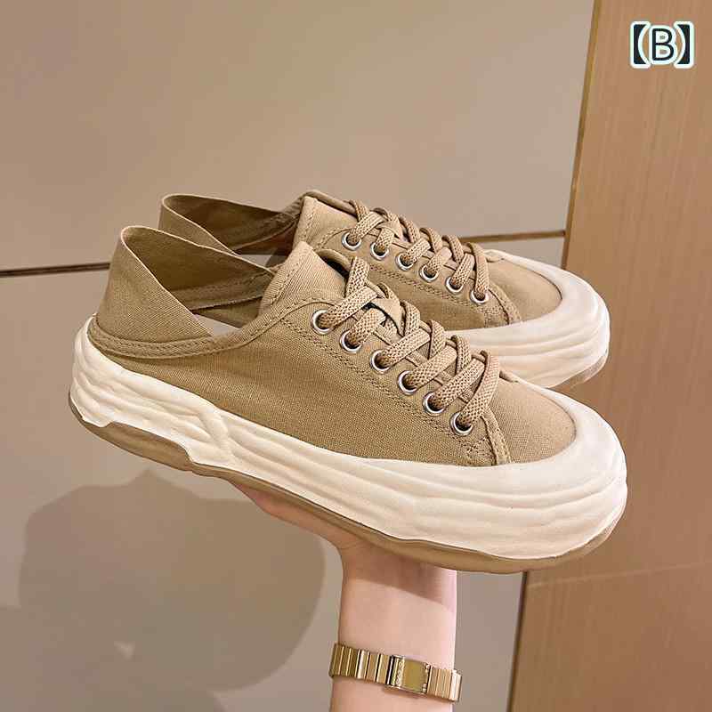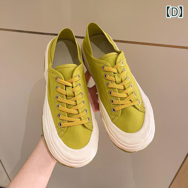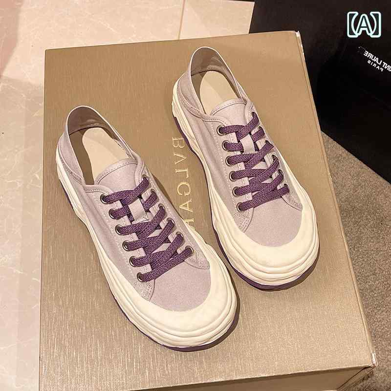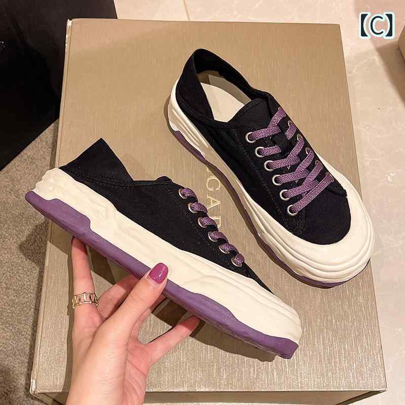 スニーカー レディース キャンバス シューズ 淡色 可愛い 帆布 運動靴 厚底 韓国系 紫 パープル 黒 ブラック ベージュ 無地 個性的 ナチュラル 春夏 ラウンドトゥ ローカット バイカラ 厚底靴