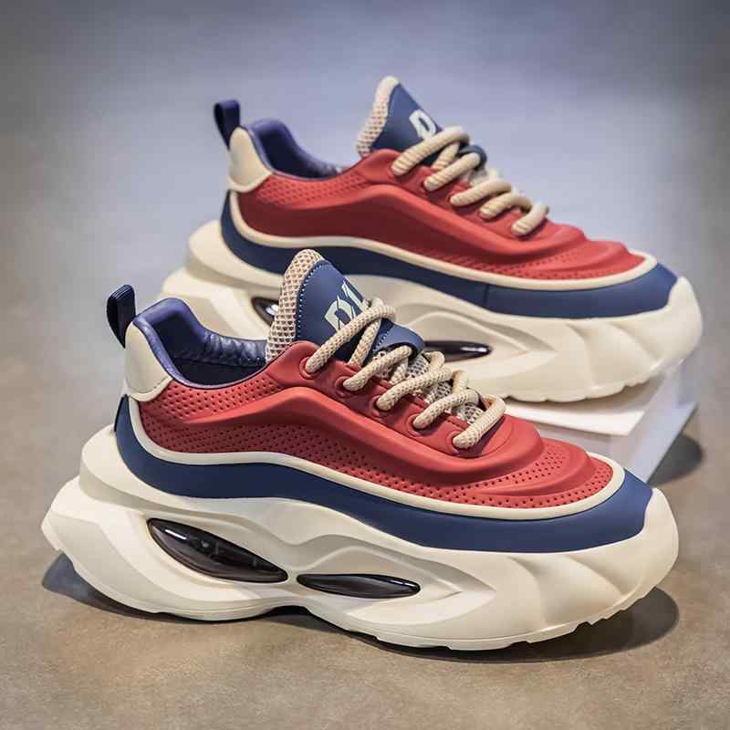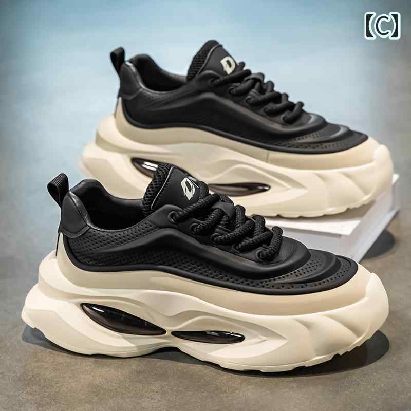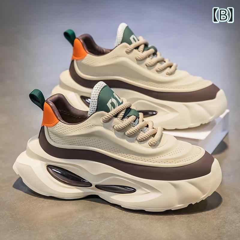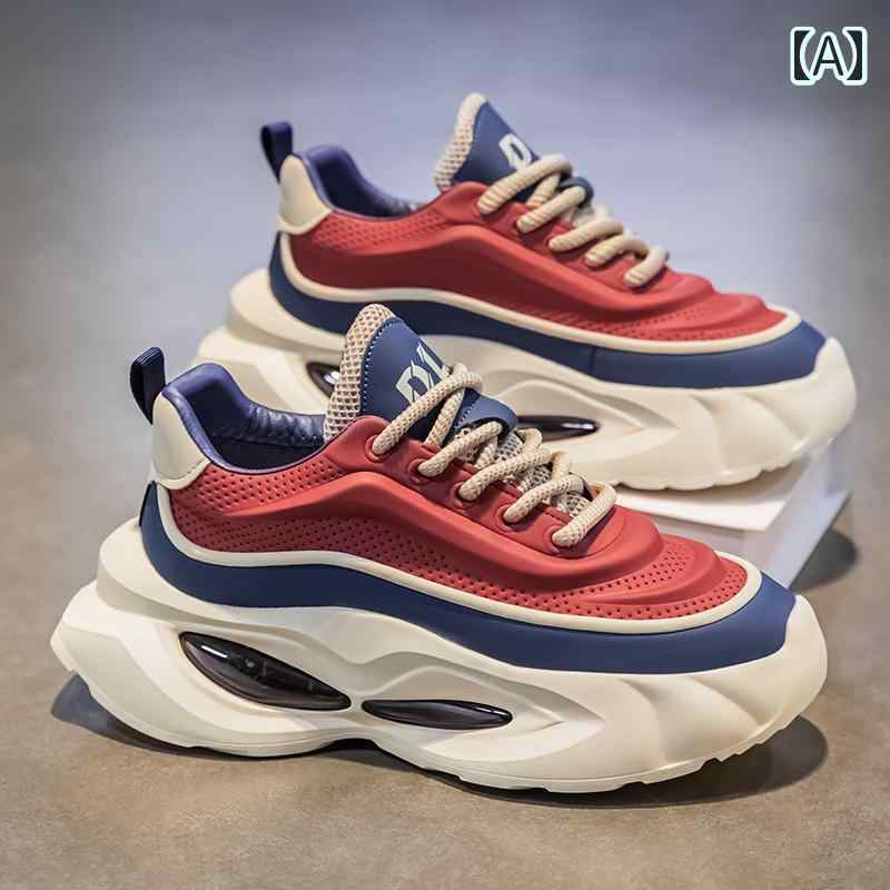 厚底 スニーカー メンズ カラフル 個性的 エアクッション 運動靴 韓国系 赤 レッド カーキ 黒 バイカラー ミックスカラー 厚底シューズ 身長アップ オルチャン系 オシャレ 大学生 華やか 男の子