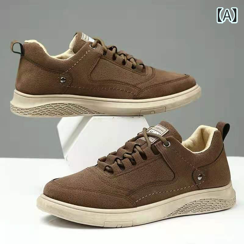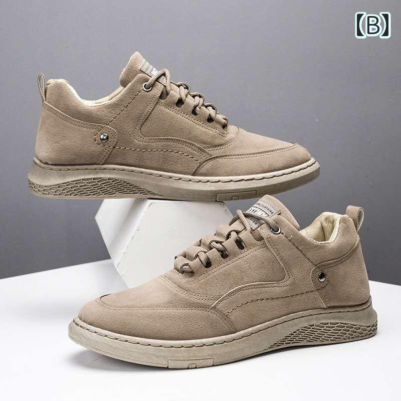 スニーカー メンズ スエード かっこいい おしゃれ レザースニーカー 韓国系 茶色 ブラウン カーキ 無地 マット シック レトロ ヴィンテージ風 きれいめ 男子 通勤 シューズ 仕事 通学 ビジネス