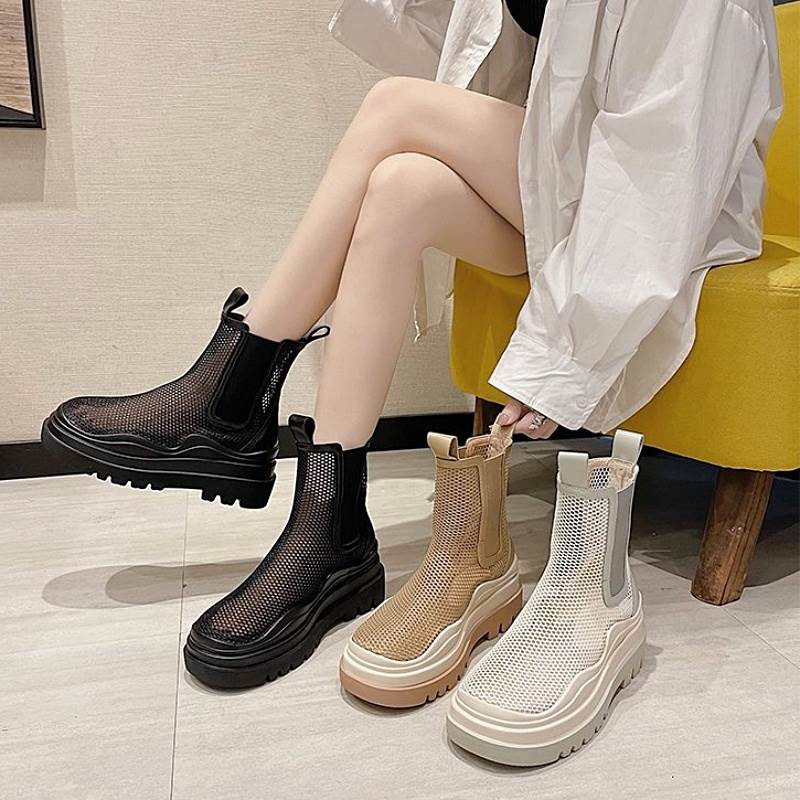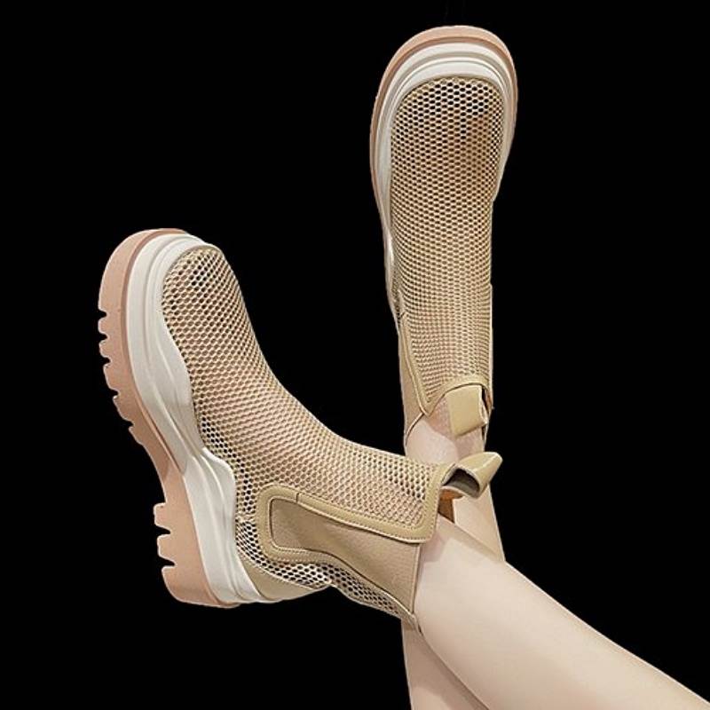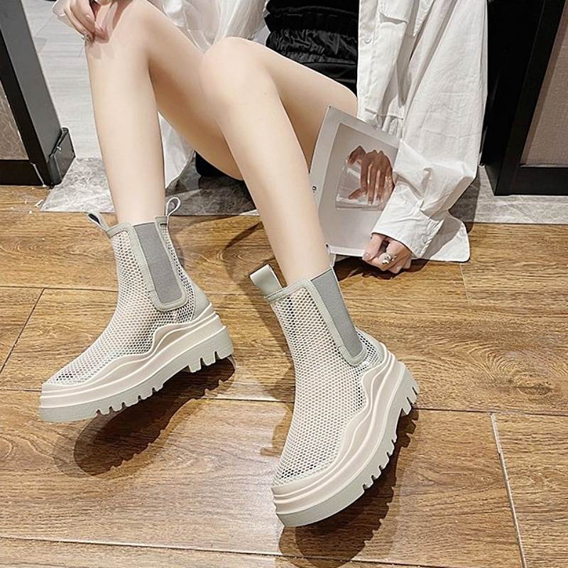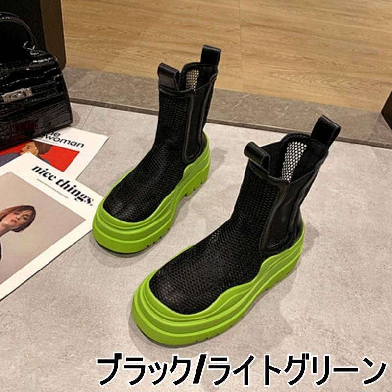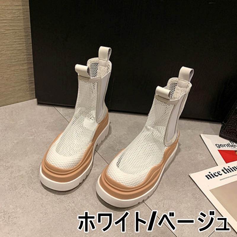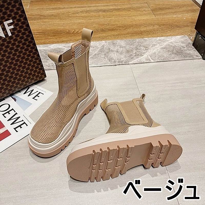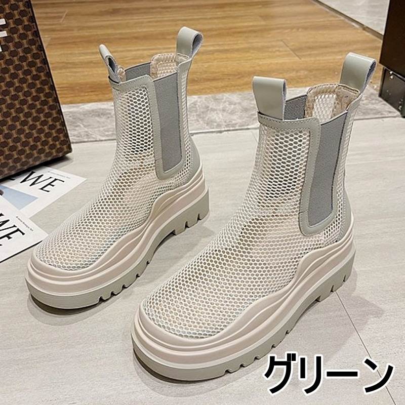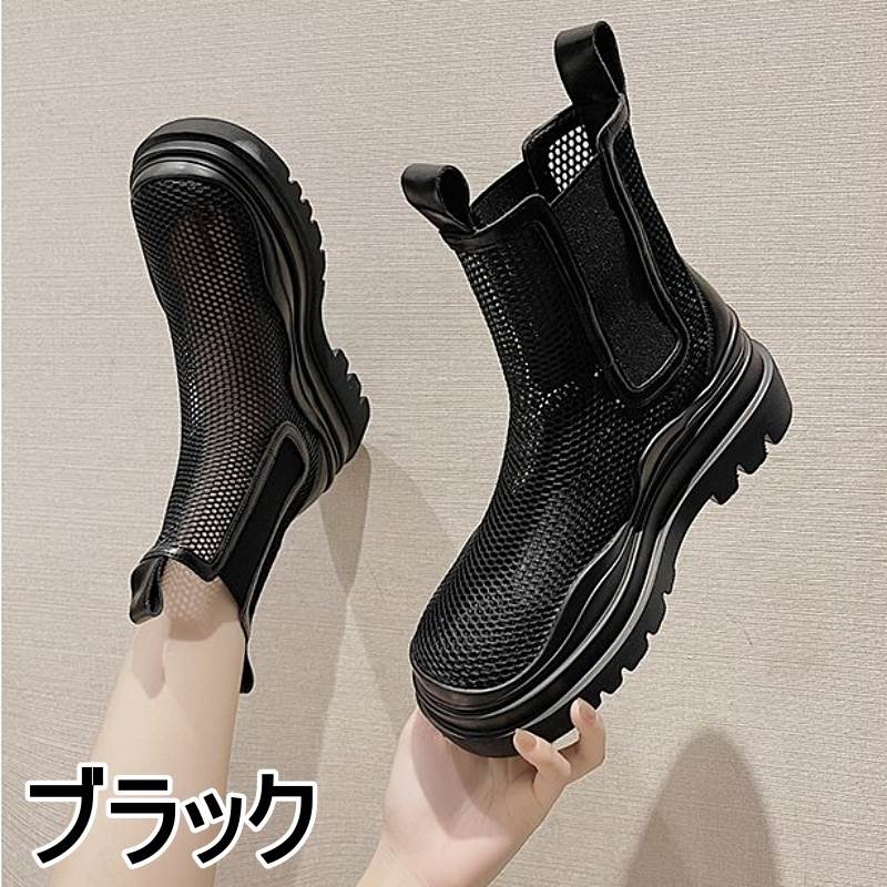 5色 ブーツ シューズ レディース 靴 クツ くつ 厚底 春 夏 通気性 メッシュ ソックススニーカー風 ネット サマーブーツ 履きやすい 透け感 美脚 脚長 シンプル ガーリー スポーティ 25cm