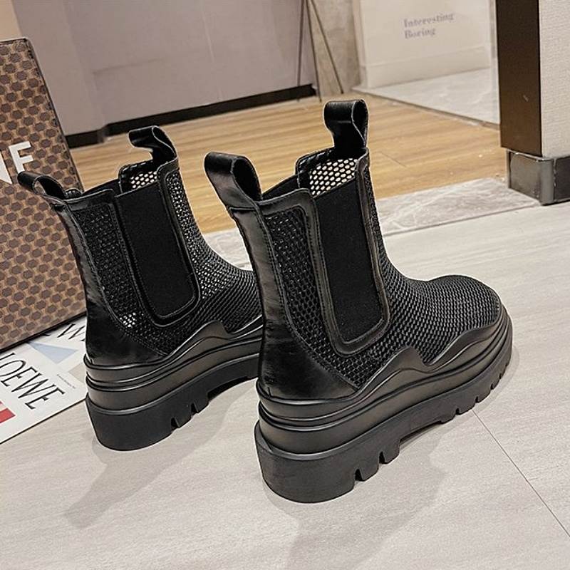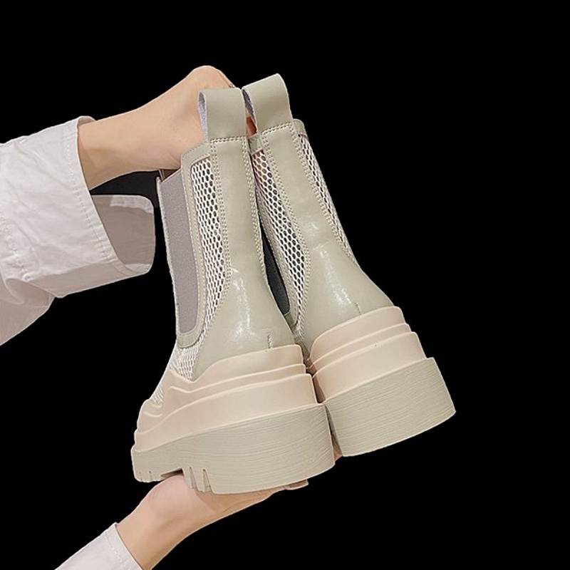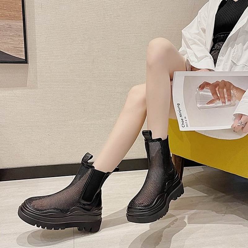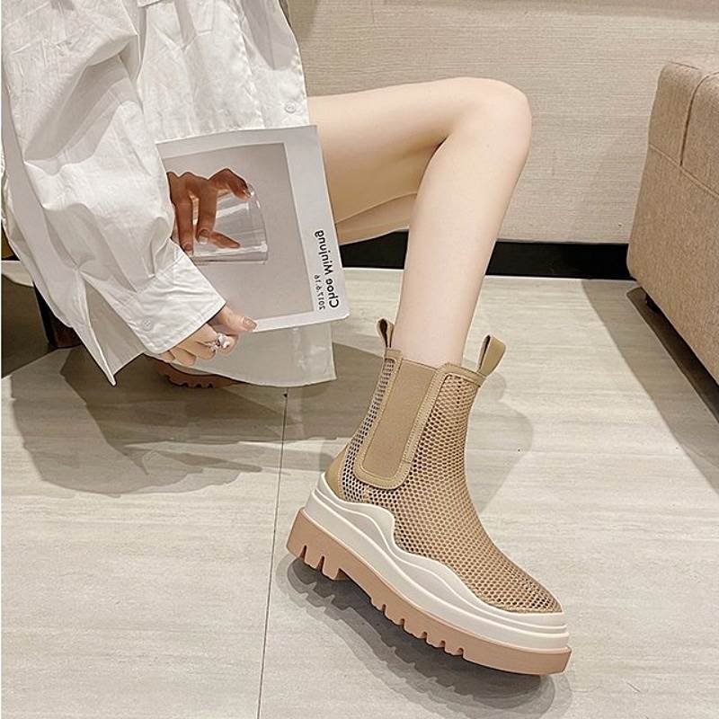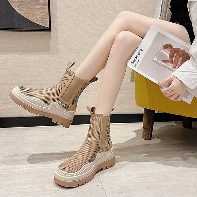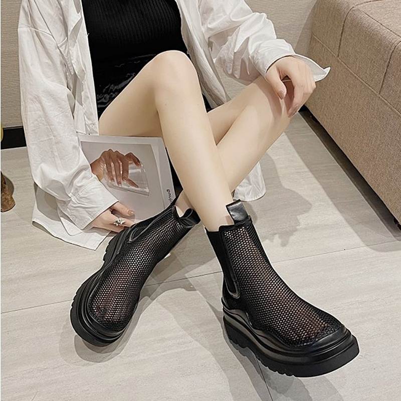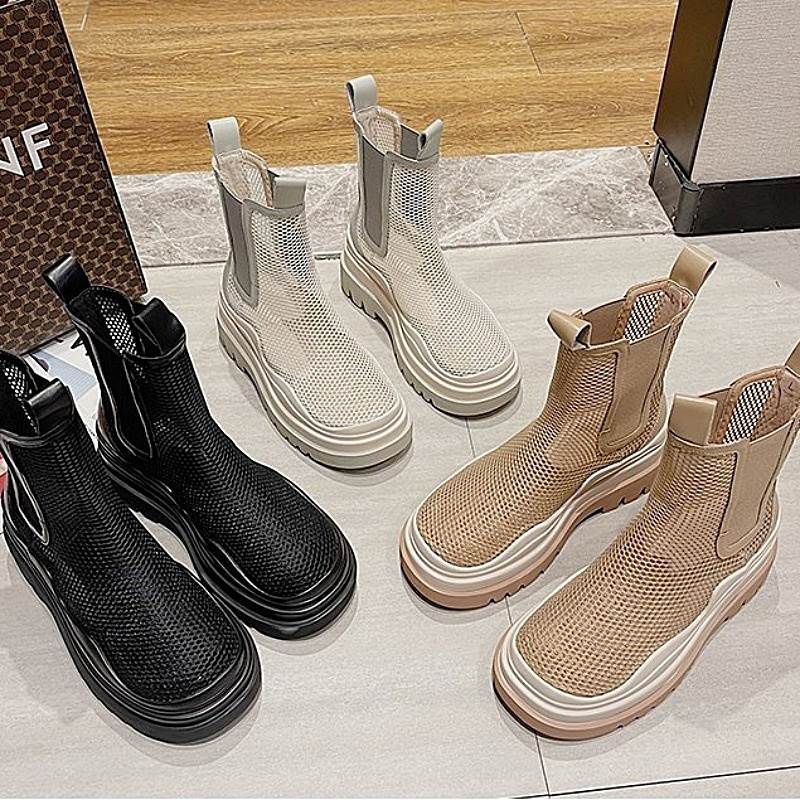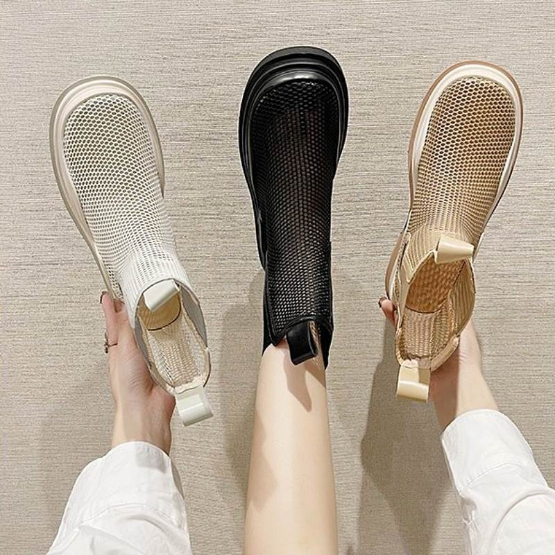 5色 ブーツ シューズ レディース 靴 クツ くつ 厚底 春 夏 通気性 メッシュ ソックススニーカー風 ネット サマーブーツ 履きやすい 透け感 美脚 脚長 シンプル ガーリー スポーティ 25cm