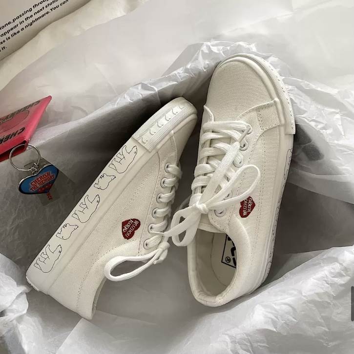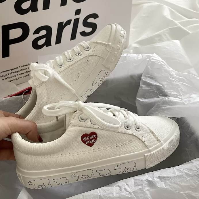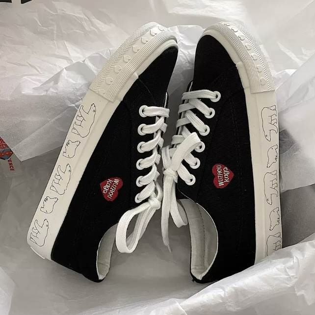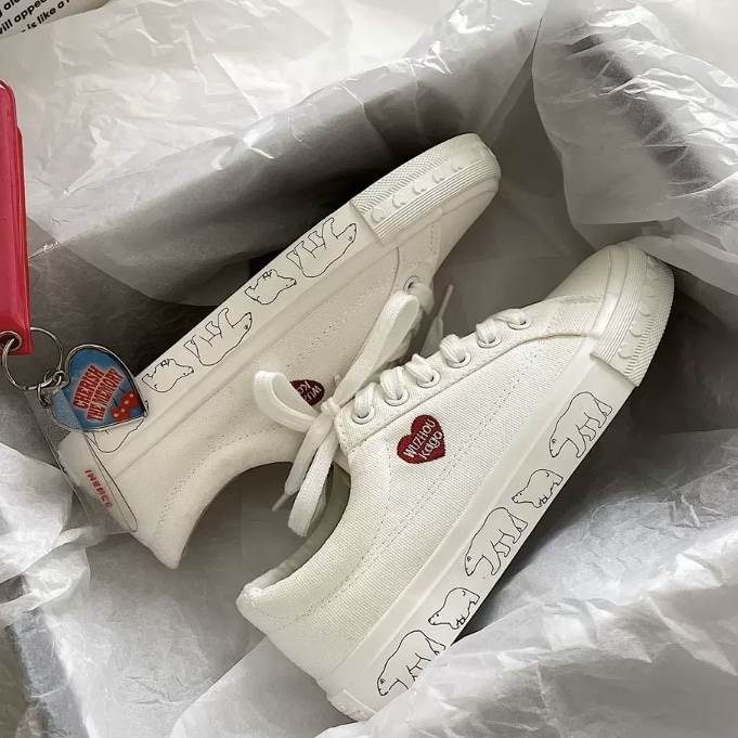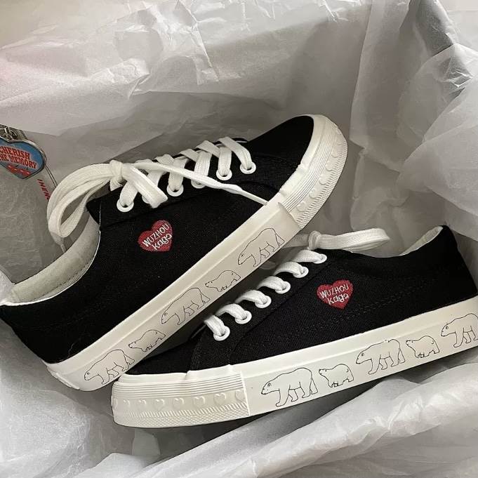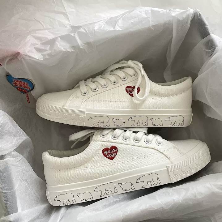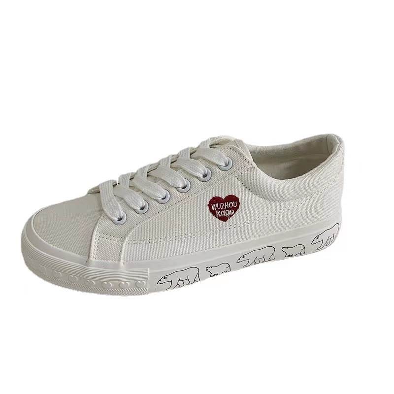 2色 スニーカー シューズ レディース 靴 ハート 白くま アニマル ホッキョクグマ 動物 ブラック ホワイト 白 黒 フラット 個性的 厚底 クツ ぺたんこ フラットストリート カジュア ローカット