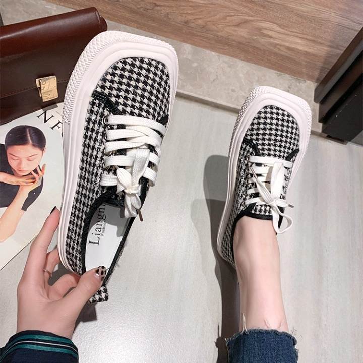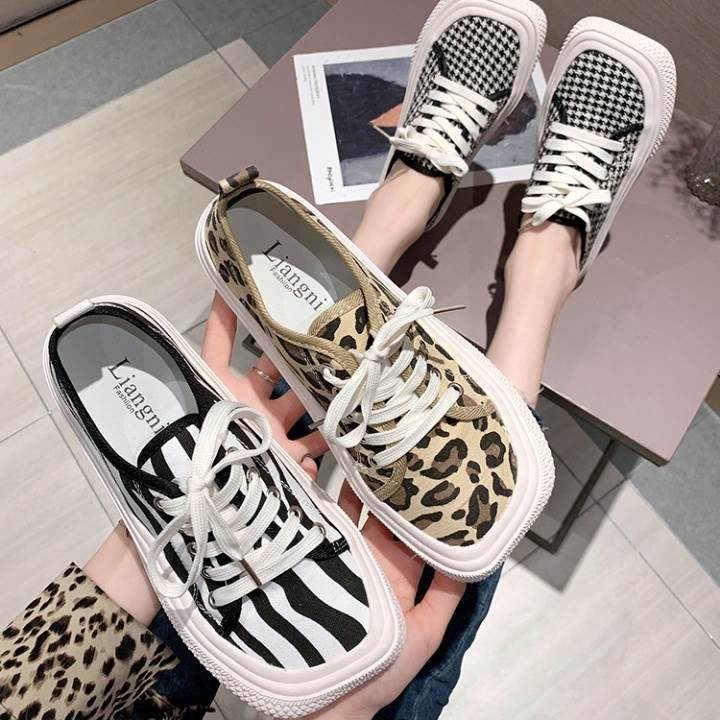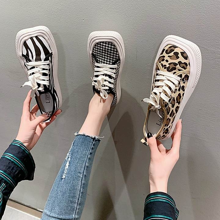 シューズ レディース ぺたんこ 厚底 スクエアトゥ 歩きやすい かわいい 個性的 千鳥格子 ヒョウ柄 ゼブラ柄 靴 クツ くつ スニーカー 紐靴 フラット シンプル かっこいい ボーイッシ 大人可愛い