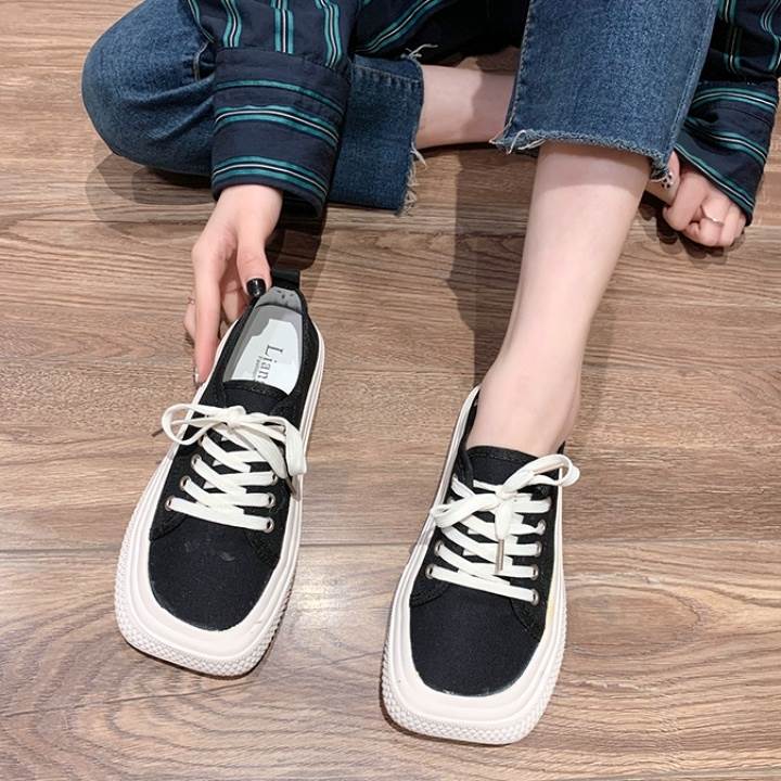 スクエアトゥが個性的な、ローカットの靴紐スニーカー♪