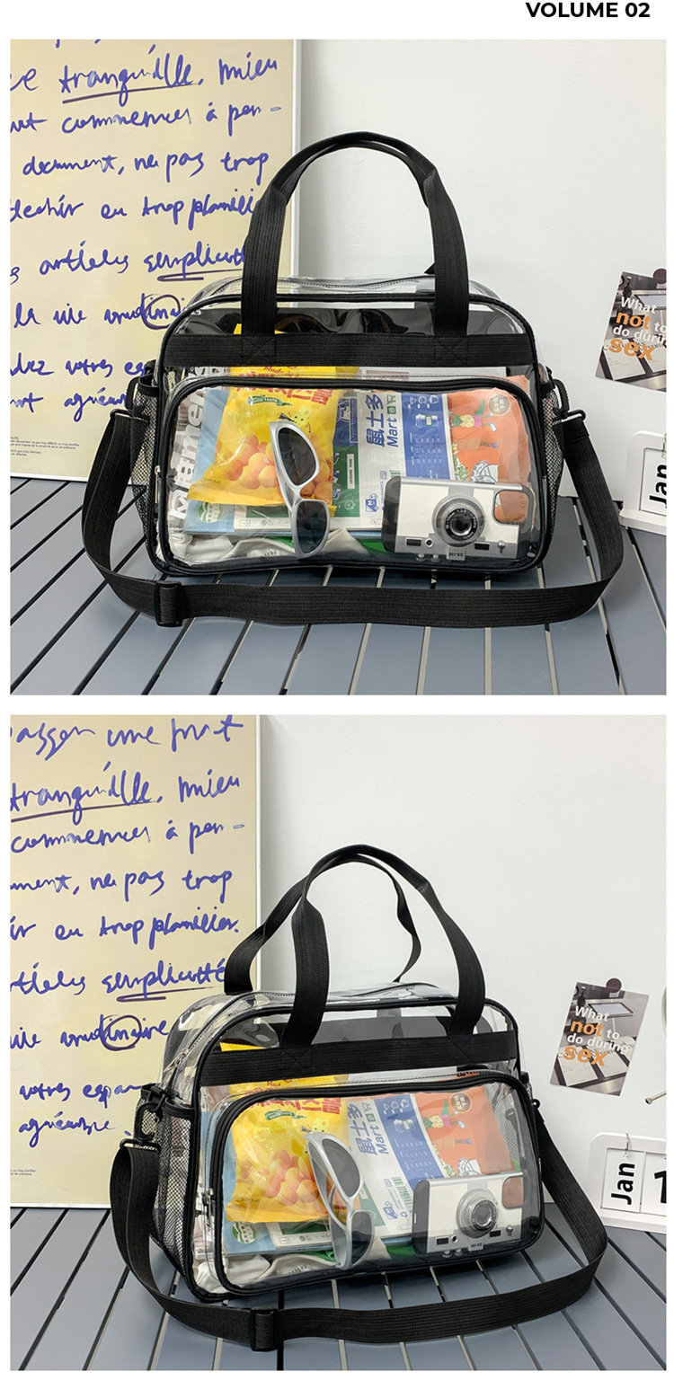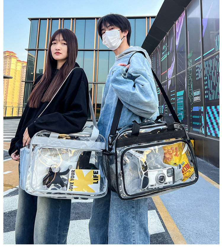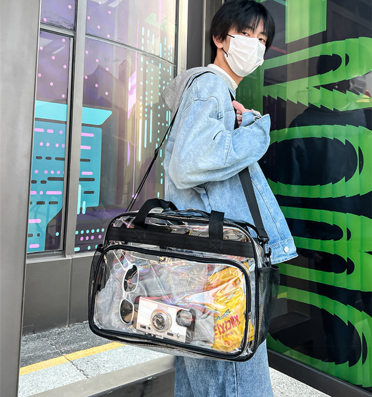 ボストンバッグ レディース メンズ バッグ カバン ボストン 透明 透明バッグ ビニール ビニールバッグ クリア クリアバッグ ショルダー 男女兼用 旅行 修学旅行 出張 2泊 スポーツ 運動 1泊