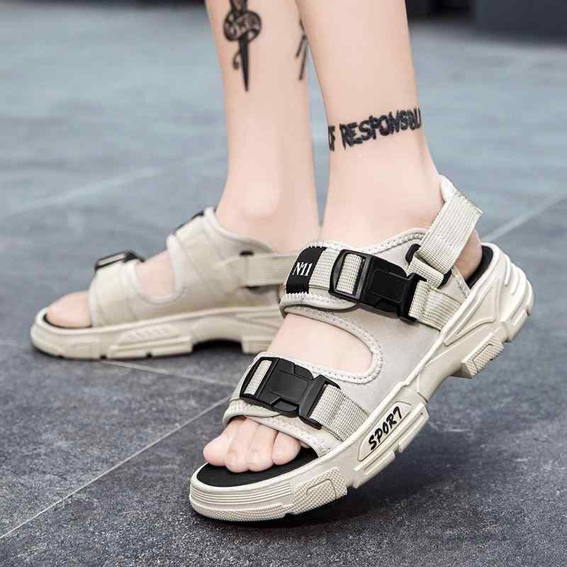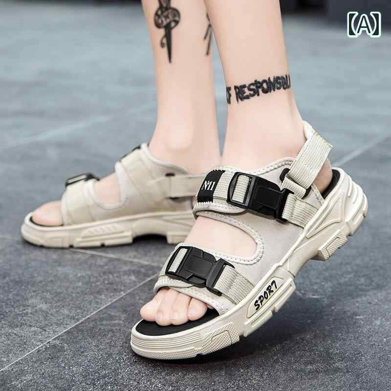 スポーツサンダル 黒 白 メンズ シンプル サンダル 韓国系 キャンバス ベルトデザイン スポサン カーキ モノトーン 春夏 シューズ 男性用 オールブラック バイカラー スポーティー ビーチサンダル