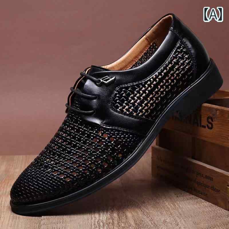 ビジネスシューズ メンズ サンダル ローファー かっこいい 春夏 透け感 フォーマル カジュアル 穴 革靴 網状 織りデザイン 通気性 レザーシューズ 個性的 きれいめ 紐なし スリッポン 海 紐あり