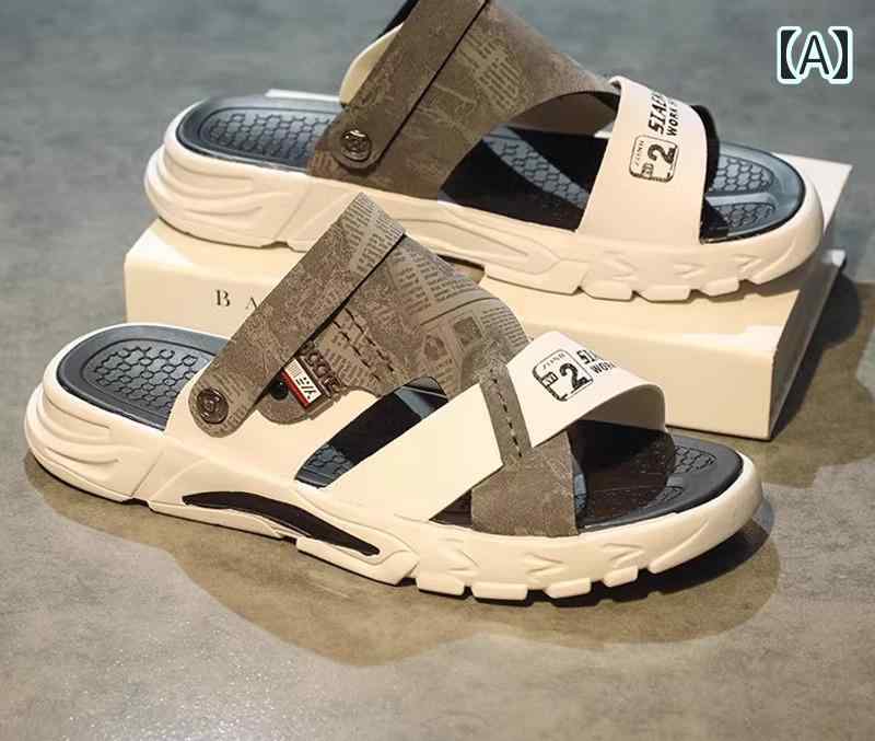 スポーツサンダル メンズ 個性的 かっこいい スリッパ サンダル 2way 韓国系 レトロ 新聞デザイン オルチャン系 男子 スポサン ビーサン 黒 ブラック 灰色 モノトーン ストラップ 春 グレー