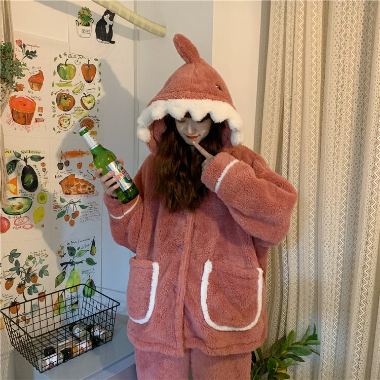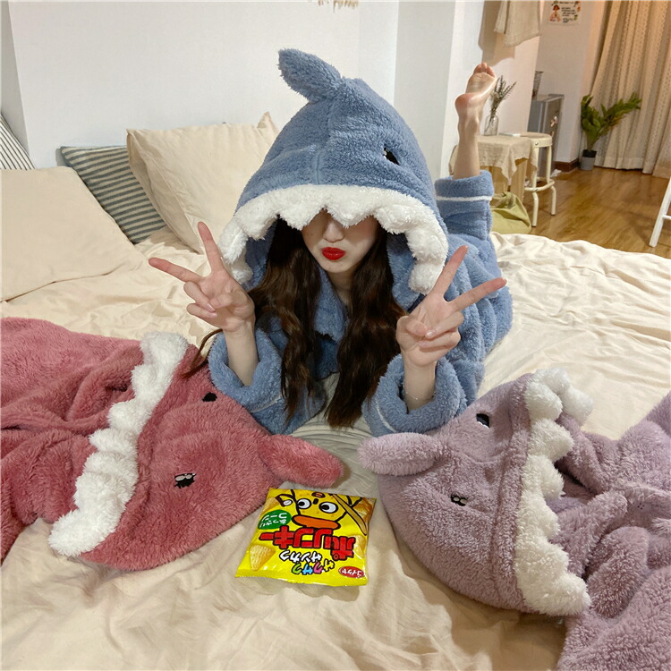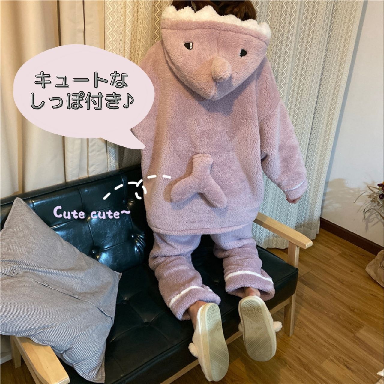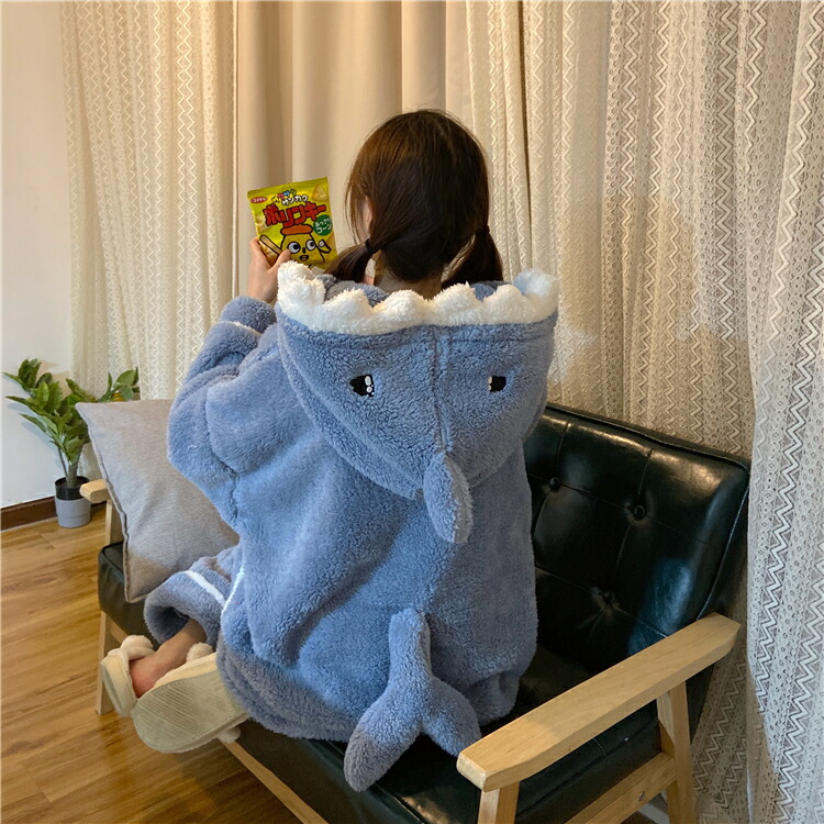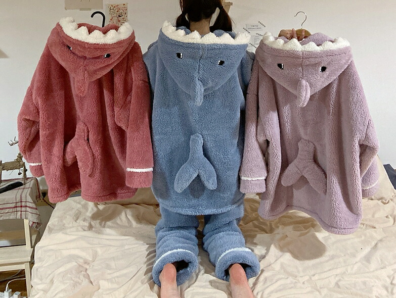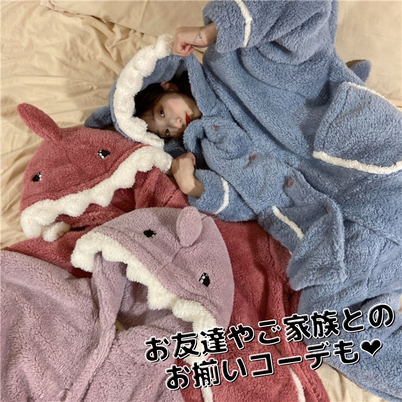 ルームウェア もこもこ 着ぐるみ パジャマ レディース 秋 冬 かわいい 暖かい 寝巻き 部屋着 ホームウェア 上下セット モコモコ 前開き セットアップ フーディー パンツ サメ シャーク コ 防寒