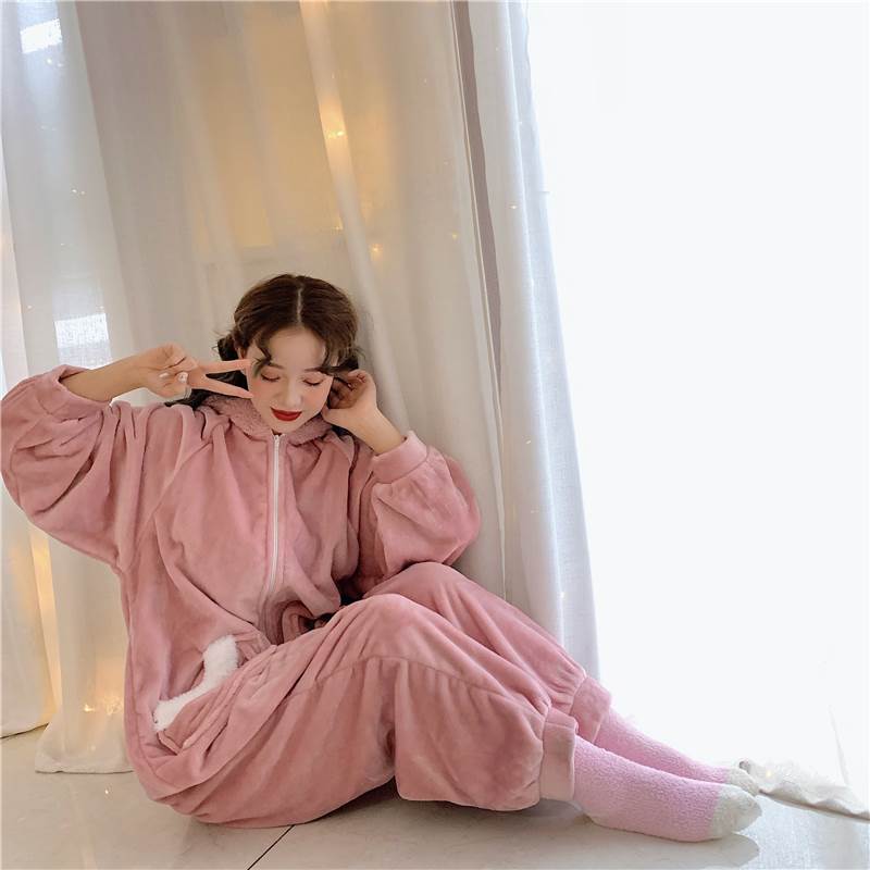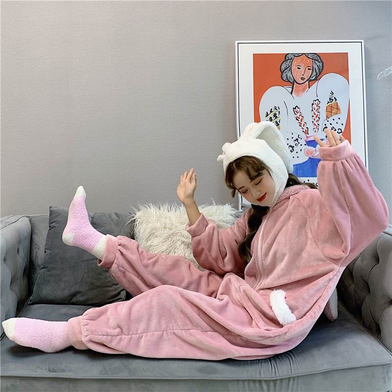 もこもこ ルームウェア パンツ レディース パジャマ 着ぐるみ風 フード付き オールインワン うさぎ ウサギ ピンク つなぎ 無地 面白い 個性的 かわいい やわらか インスタ映え キャラク ふわふわ