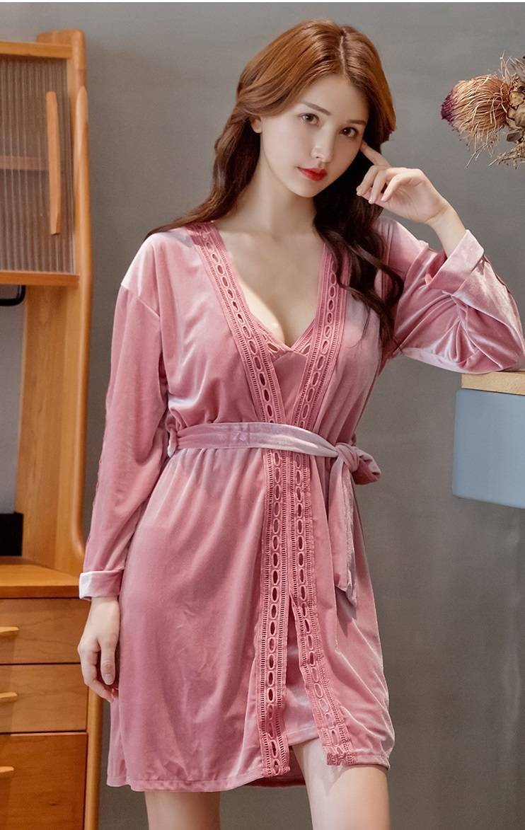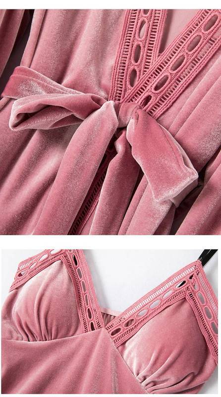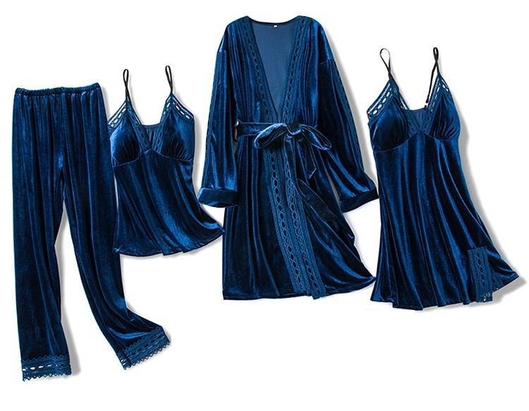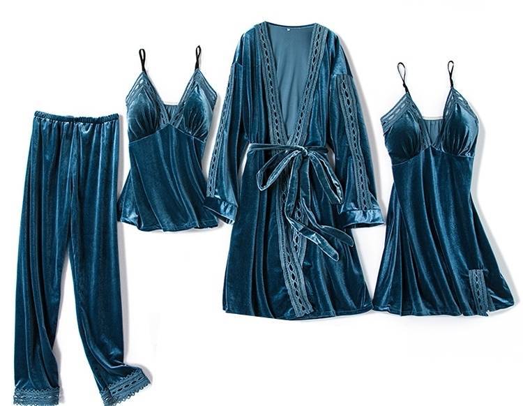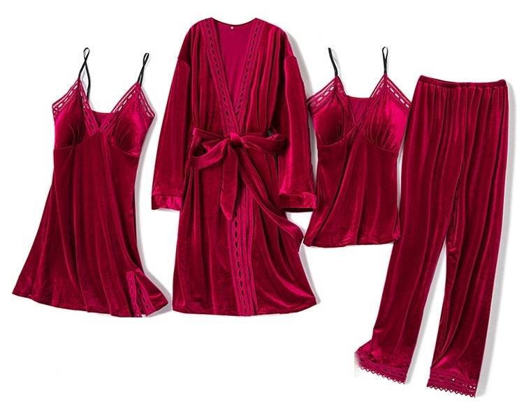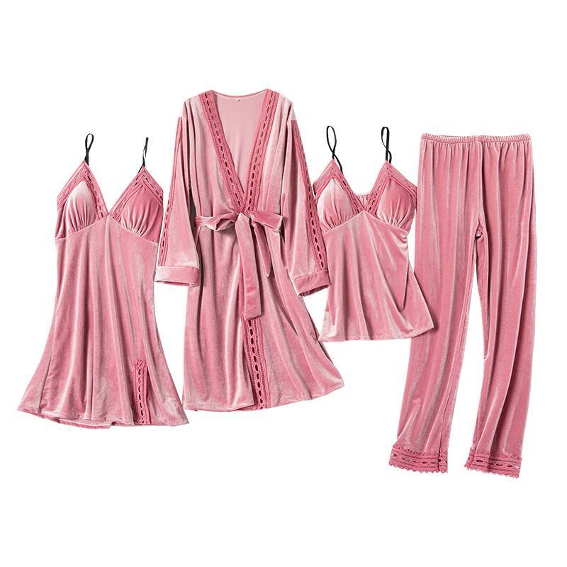 ルームウェア レディース パジャマ 部屋着 寝巻き 4点セット 春 秋 ネグリジェ ガウン キャミソール パンツ ワンピース きれいめ セクシー 長袖 ノースリーブ セット ナイトウェア ホーム 上下