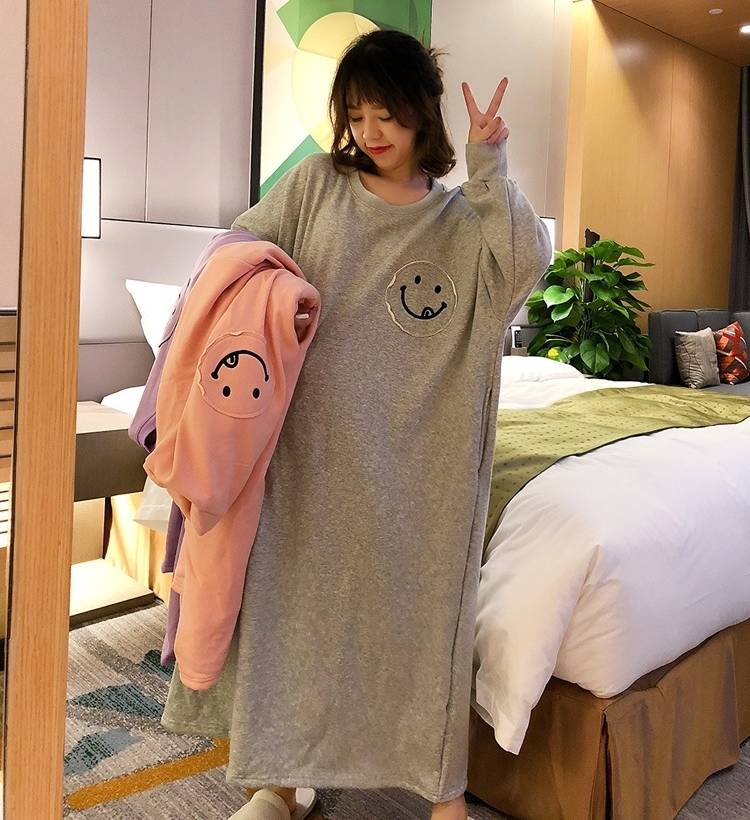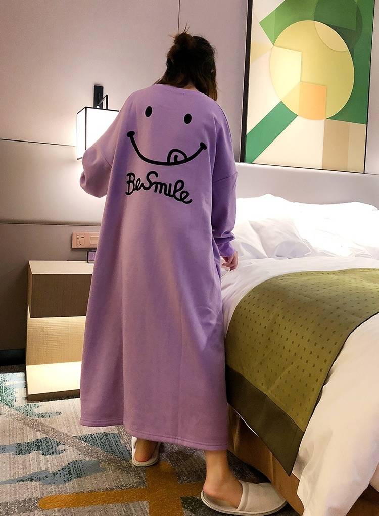 ルームウェア レディース もこもこ かわいい ワンピース パジャマ 秋 冬 ニコちゃん カジュアル 寝巻き 部屋着 ホームウェア モコモコ フリース 大きいサイズ xl グレー ピンク パープ 2xl