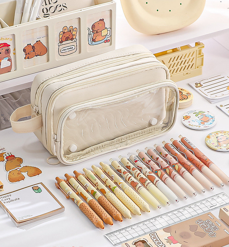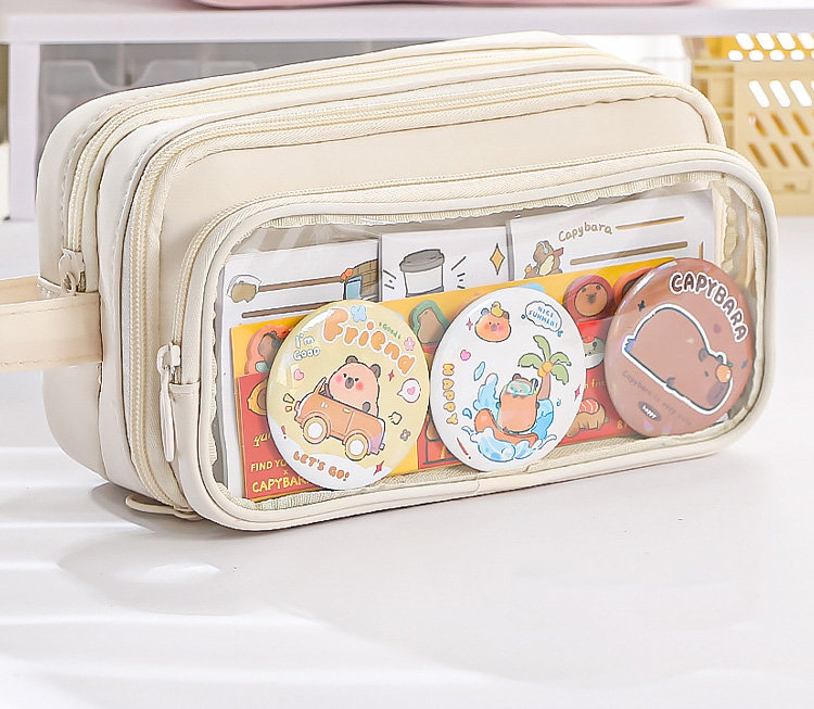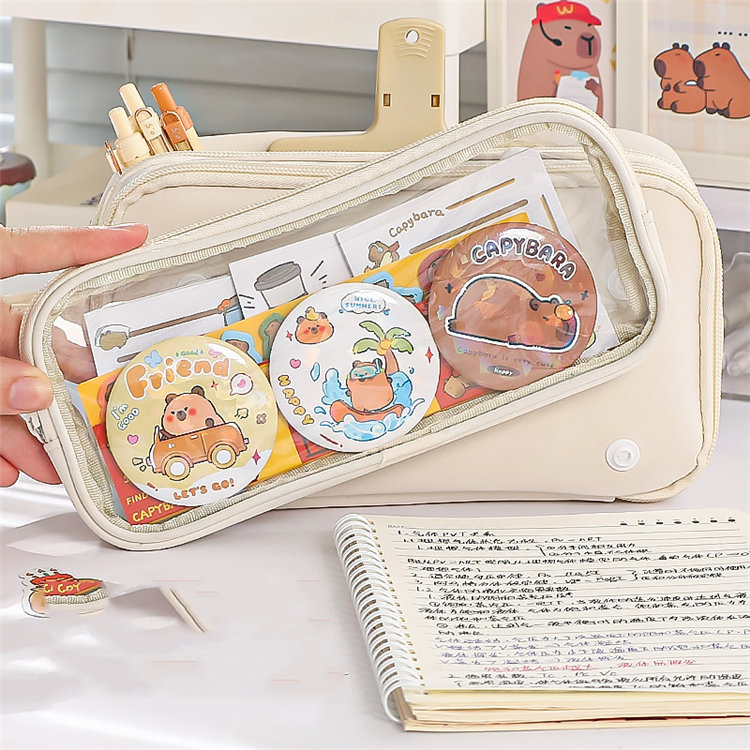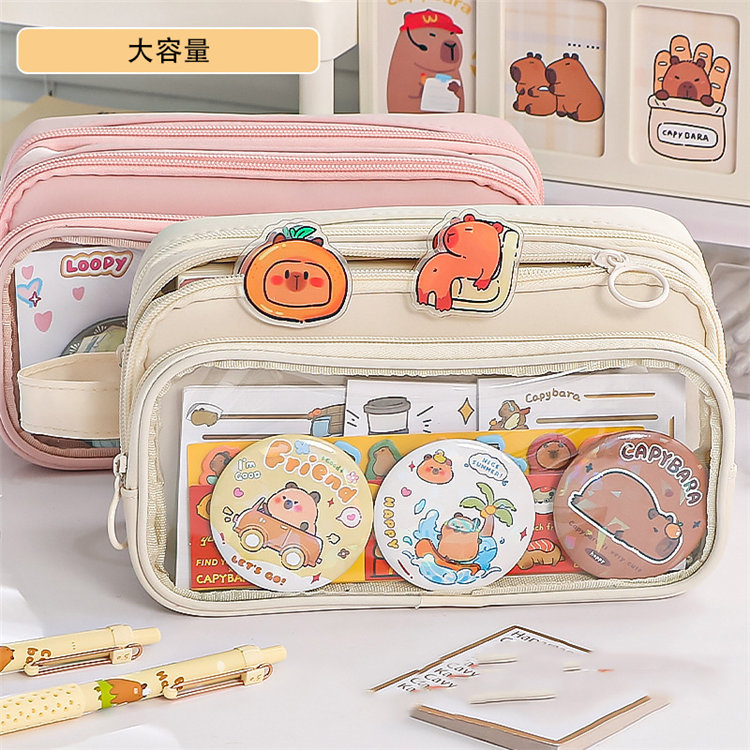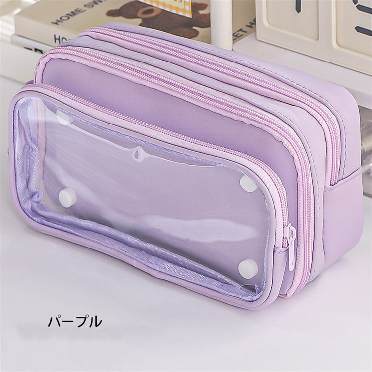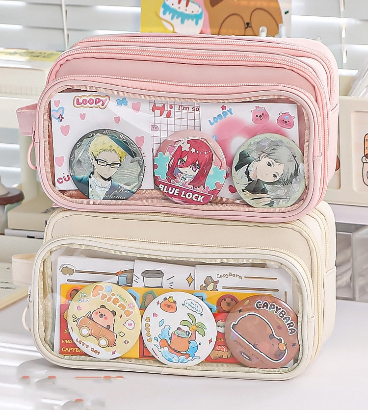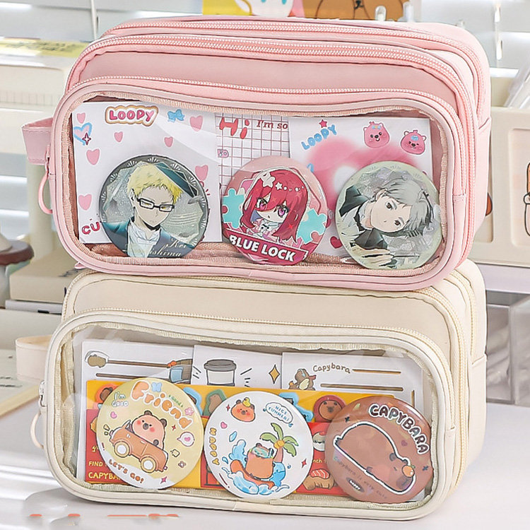 ペンケース 筆箱 大容量 多機能 小学生 中学生 高校生 子供 大学生 痛ペンケース 缶バッチ入れ 両面透明 痛バ 推し 推し活 推し筆箱 痛 バ 痛バッグ ツールペンケース 学生 通学 J かわいい