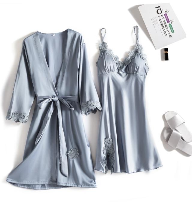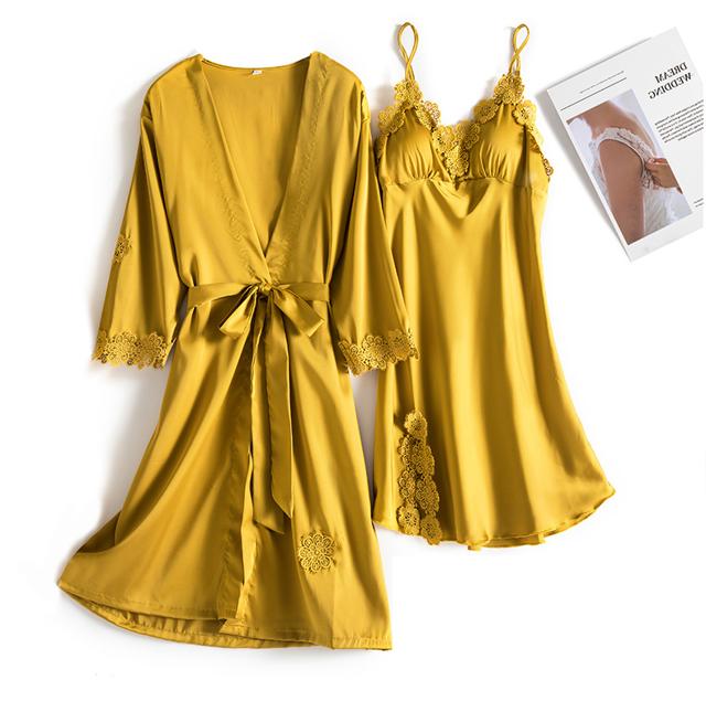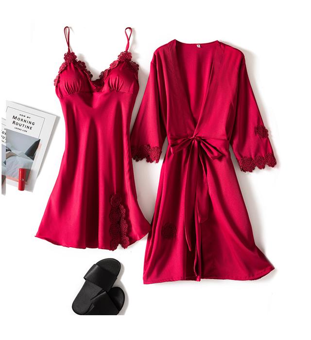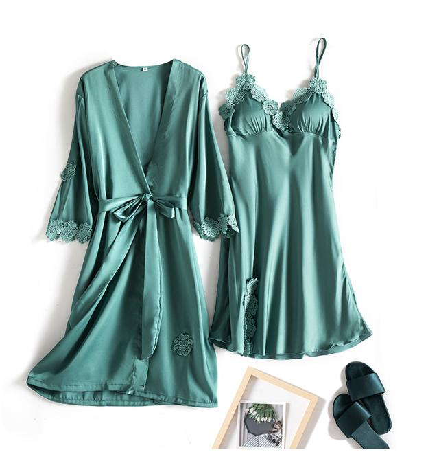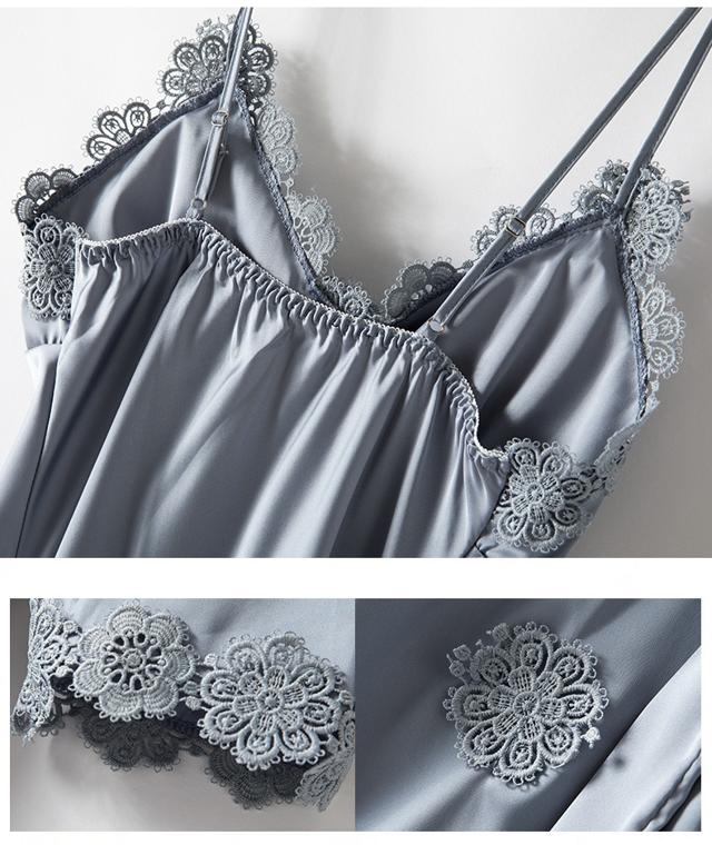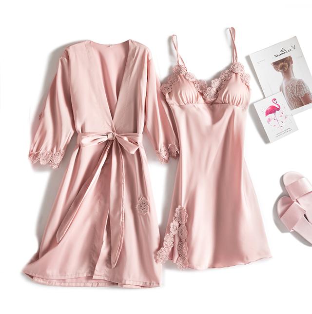 5色 ルームウェア レディース 可愛い 上下セット ワンピース パジャマ かわいい 春 夏 秋 ネグリジェ ナイトウェア 部屋着 寝巻き ツーピース セットアップ シルク風 ナイトドレス