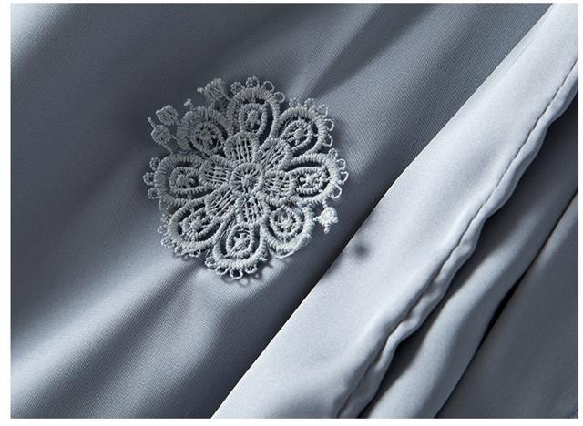 キャミワンピの胸元とスリット、ガウンの袖口にも縁取る可愛い花柄の刺繍。
