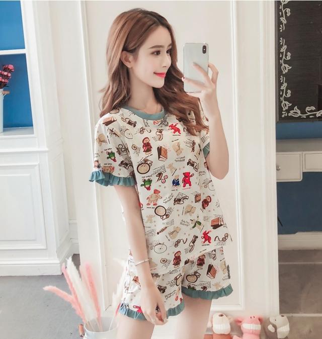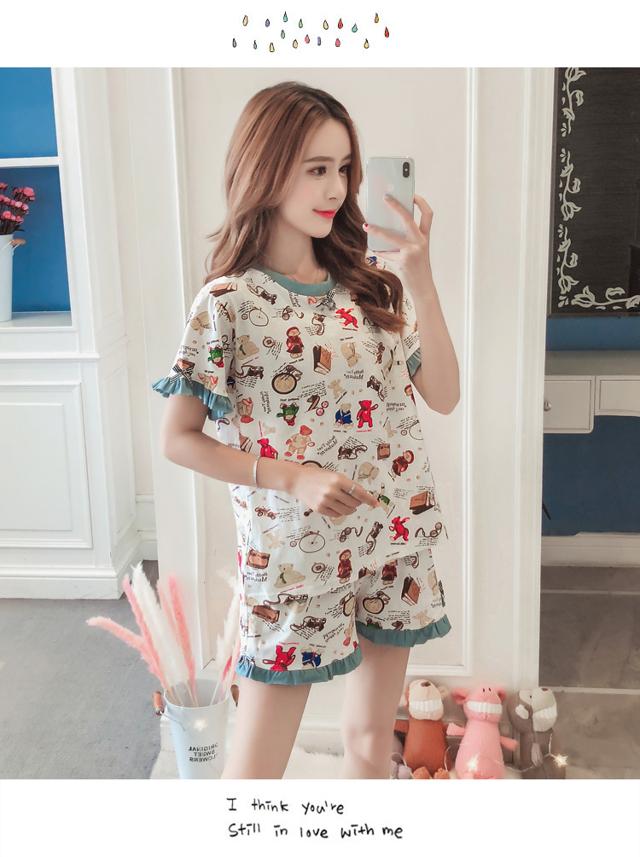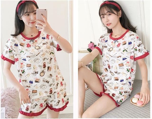 ルームウェア レディース パジャマ 上下セット ショートパンツ かわいい 半袖 春 夏 秋 部屋着 寝巻き 女の子 イラスト 綿100% Tシャツ パンツ ツーピース おしゃれ 大きいサイズ セット