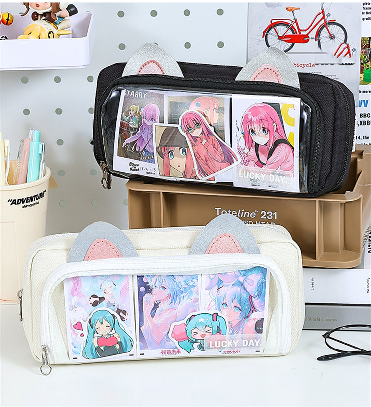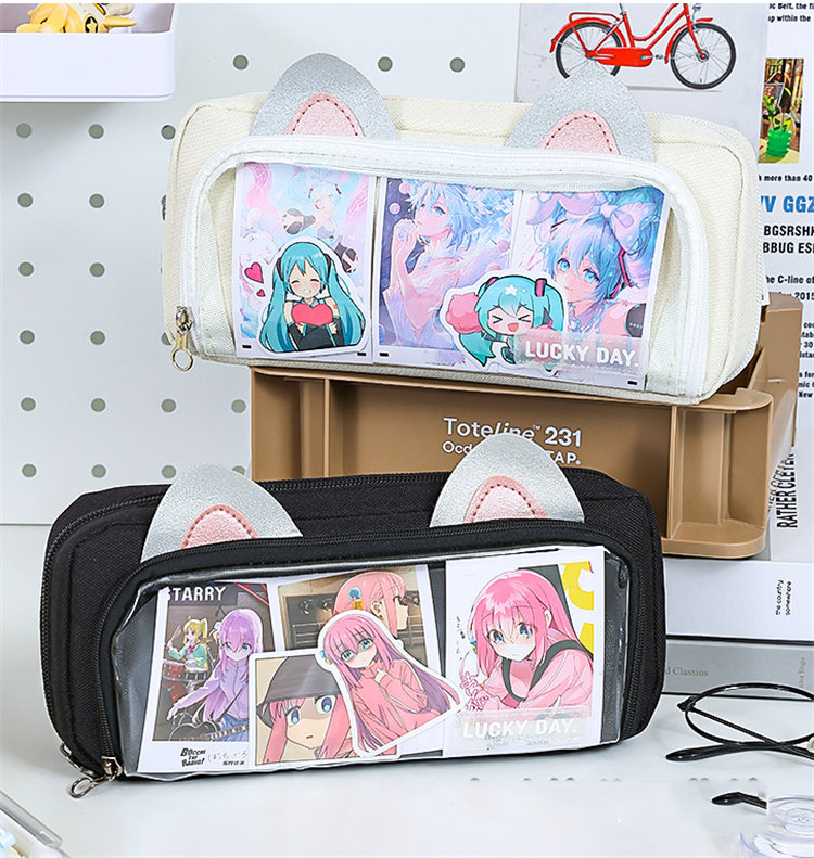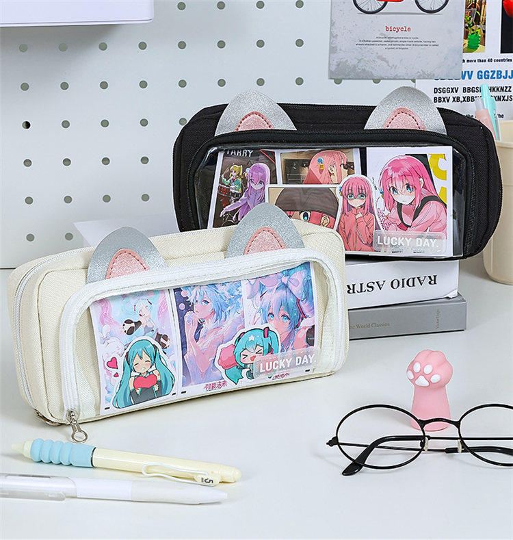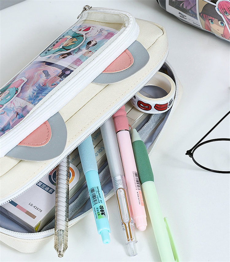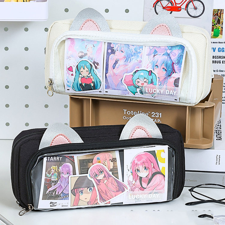 ペンケース 筆箱 推し筆箱 推し 痛ペンケース 痛バ 痛バッグ 缶バッジ クリア 透明窓 大容量 多機能 子供 小学生 中学生 高校生 大学生 学生 社会人 缶バッチおしゃれ スクール 女の子 大人