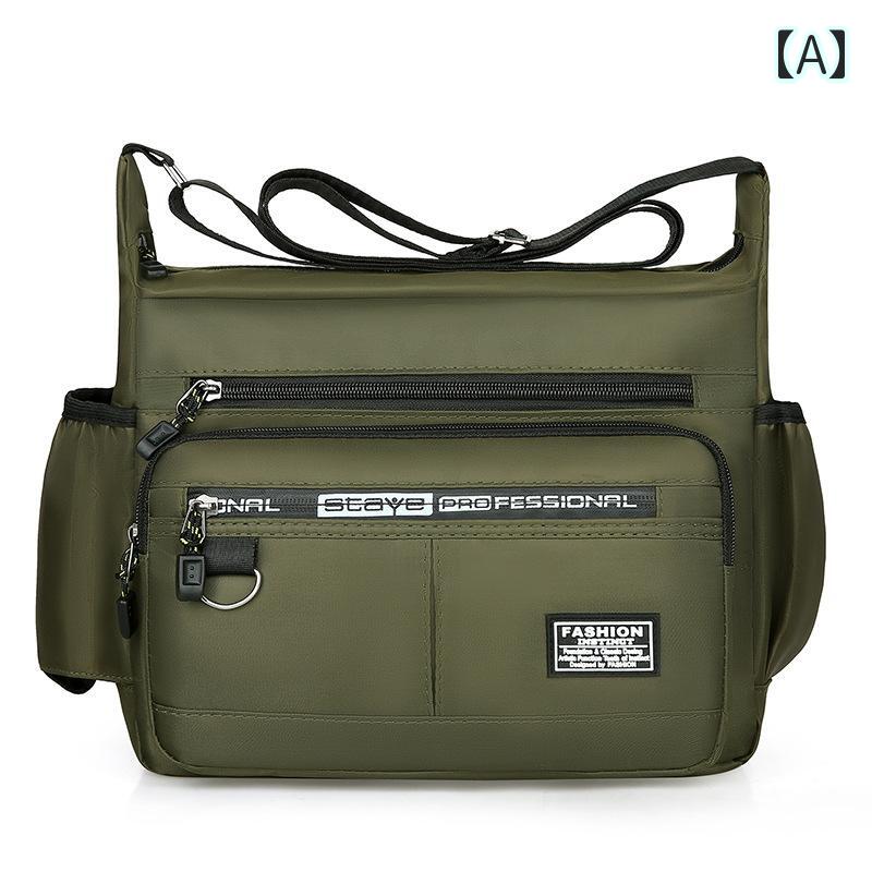 ショルダーバッグ メッセンジャーバッグ メンズ 大容量 多機能 ナイロン 便利 使いやすい トラベル 旅行 バック 黒 ブラック 緑 グリーン 灰色 グレー 紺色 無地 ポケット ドリンク入 ネイビー
