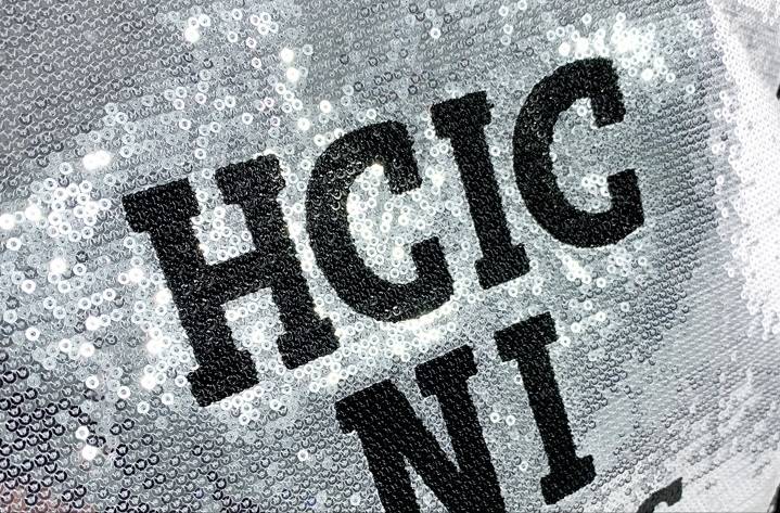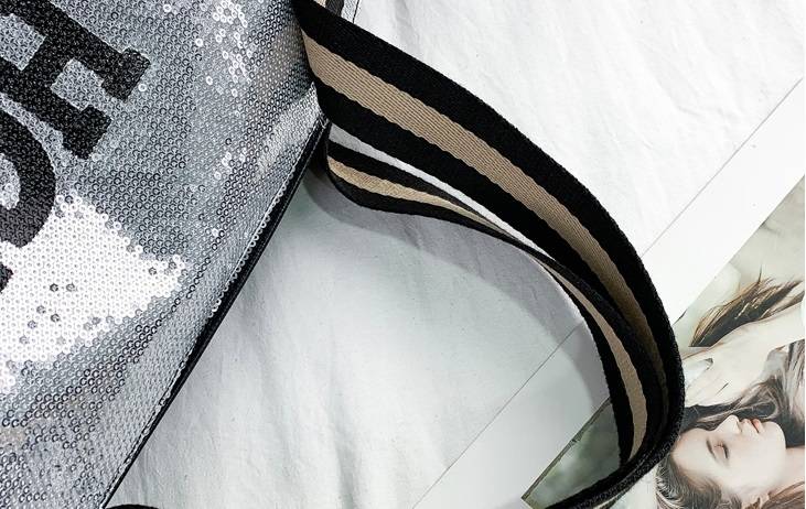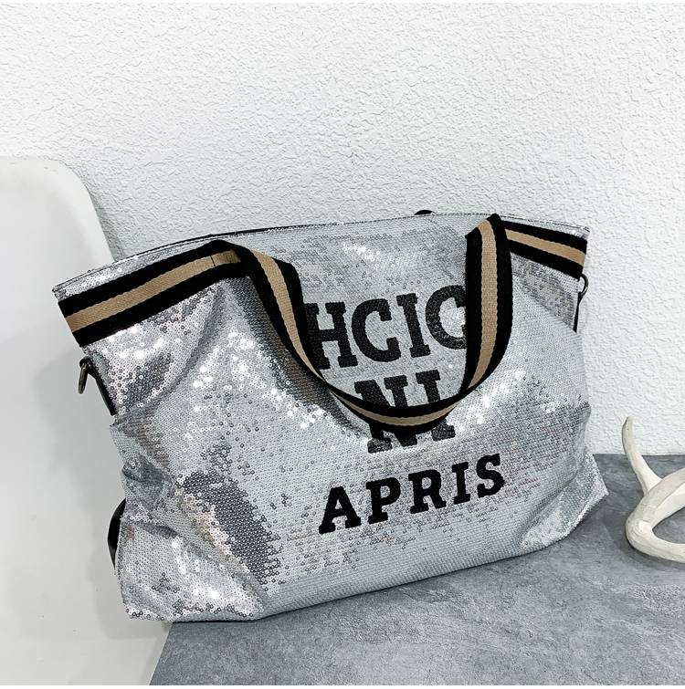 スパンコールが全面にあしらわれた大容量のショルダーバッグ