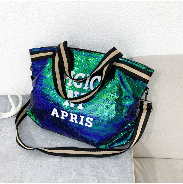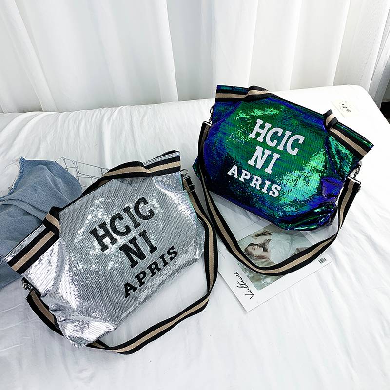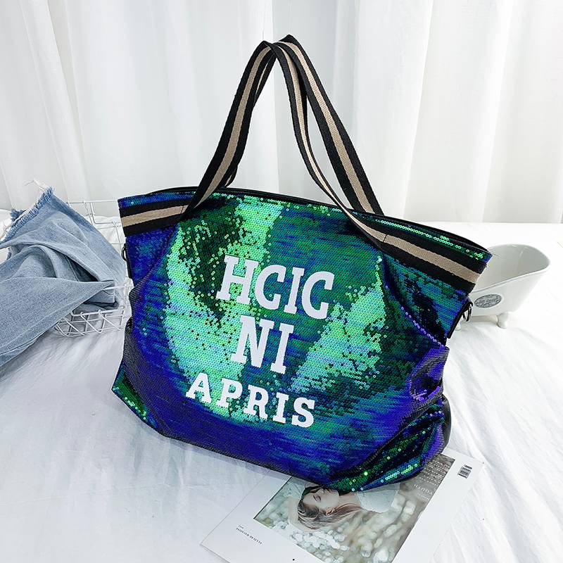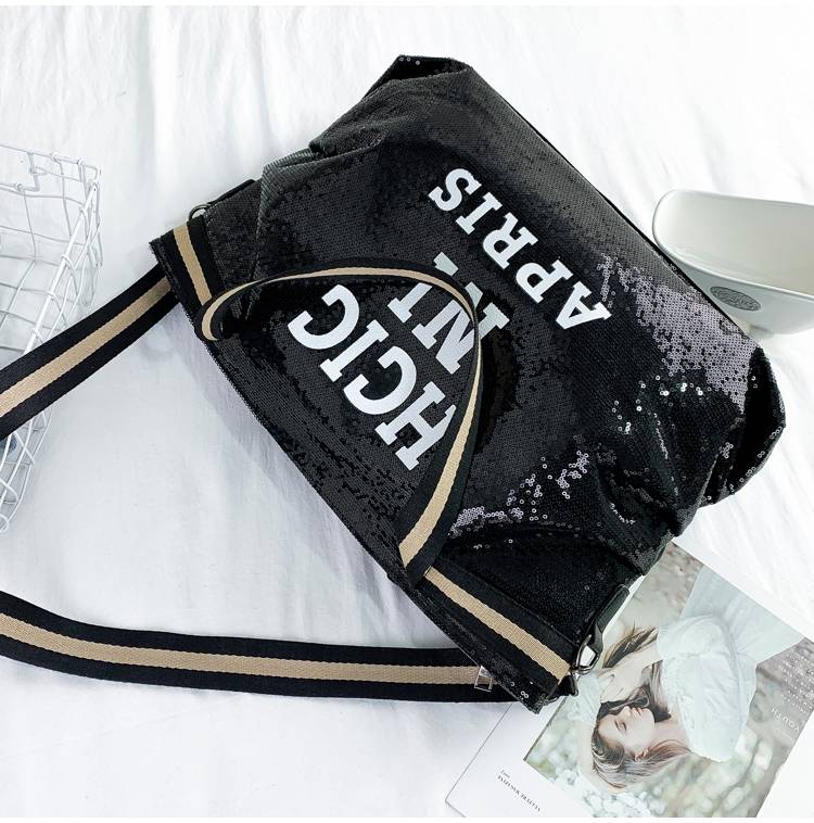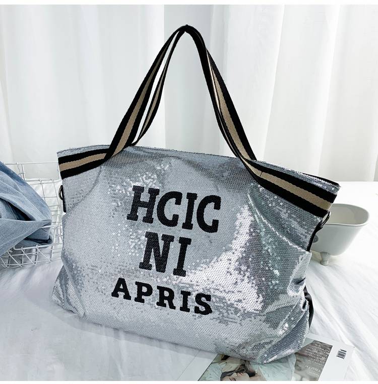 4色 トートバッグ ショルダーバッグ 大容量 A4 バッグ レディース スパンコール キラキラ ロゴ メッセンジャーバッグ ハンドバッグ 3way 個性的 カジュアル ボーイッシュ 肩がけ 内ポケット