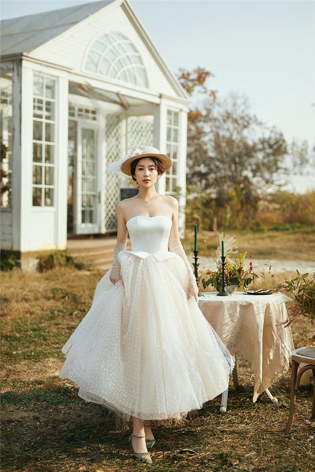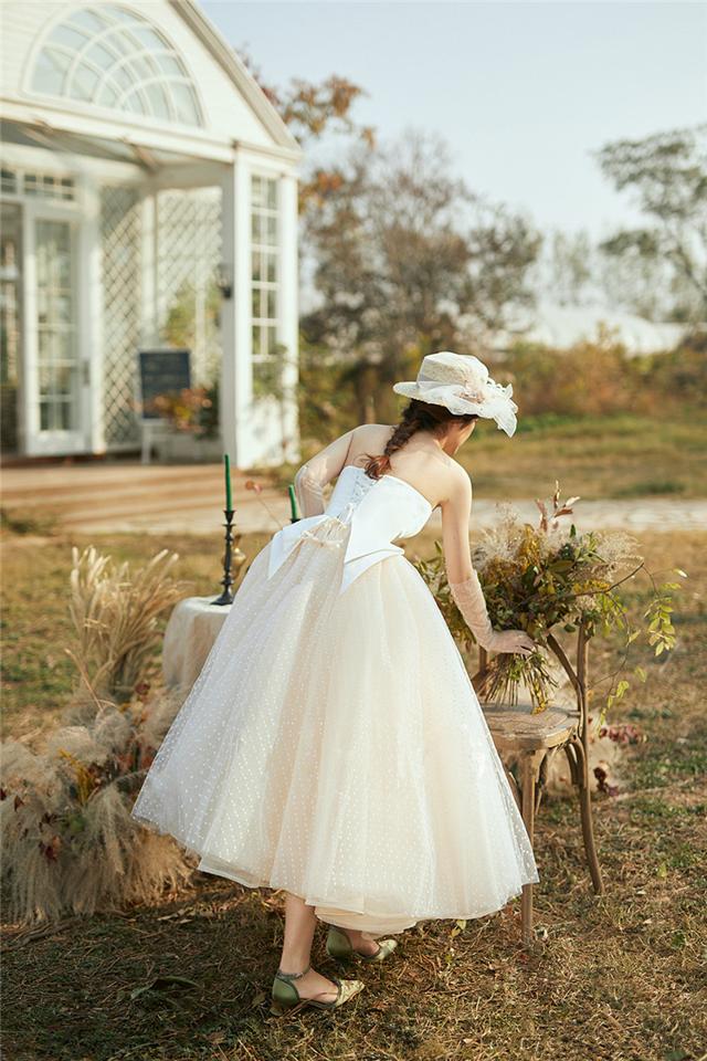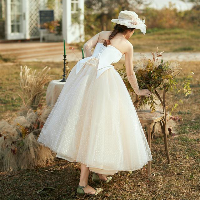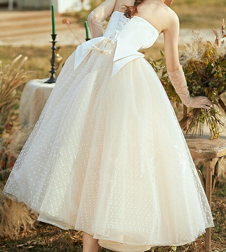 ウェディングドレス ミモレ丈 二次会 花嫁ドレス 結婚式 ドレス パーティードレス Aライン プリンセス おしゃれ 個性的 可愛い ナチュラル カジュアル レトロ 大きいサイズ xl 2x クラシカル