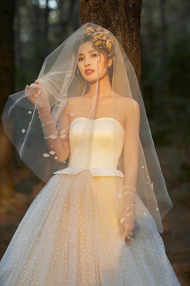 オールドムービーの女優さんが着ていそうな、レトロで可愛いベアトップドレスです。