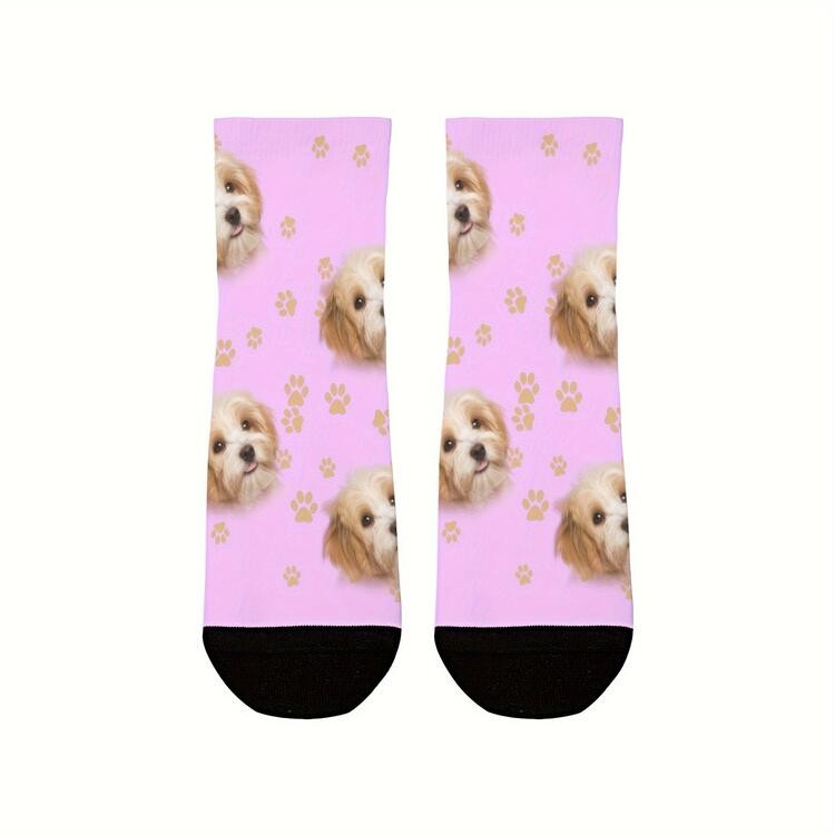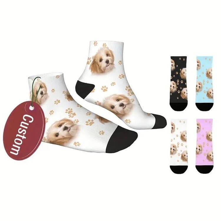 カスタムペットフェイスソックス、パーソナライズされた面白いギフトアンクルローカットソックス、カスタマイズされた写真付き、ティーンエイジャー向けの斬新でトレンディなクルーパーティープレゼントソックス