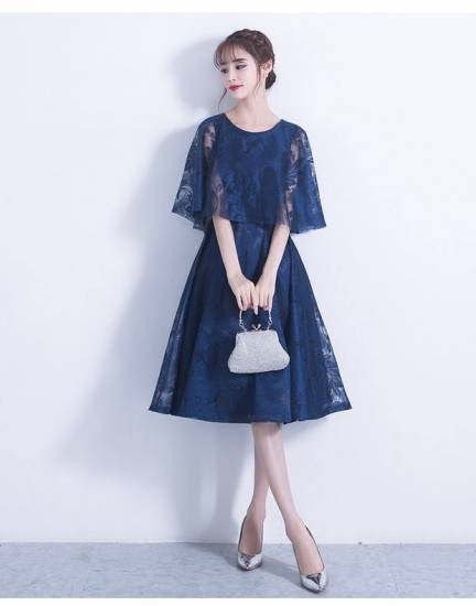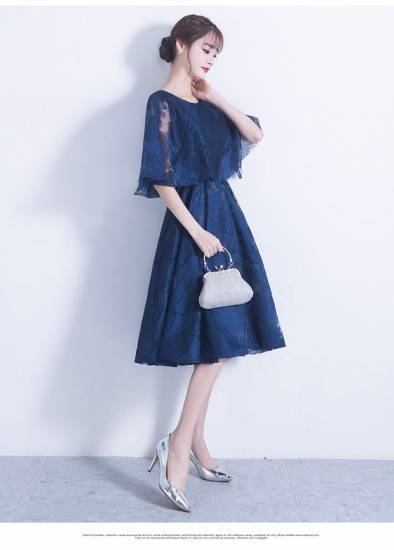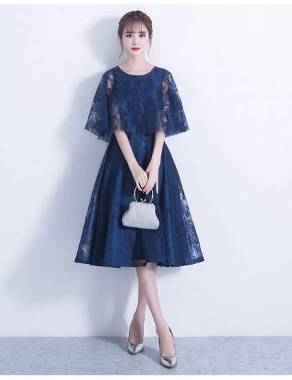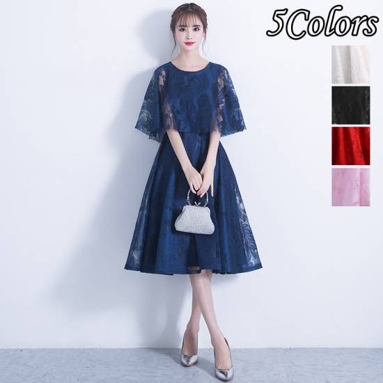 ドレス パーティードレス レディース 結婚式 パーティー お呼ばれ 二次会 フレアー レース 袖あり 膝丈 ケープ 透け感 エレガント フェミニン きれいめ 大きいサイズ 20代 30代 高級感