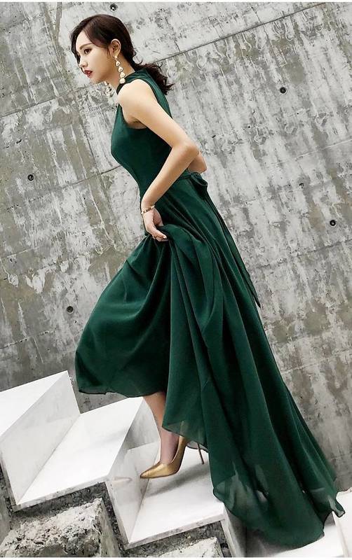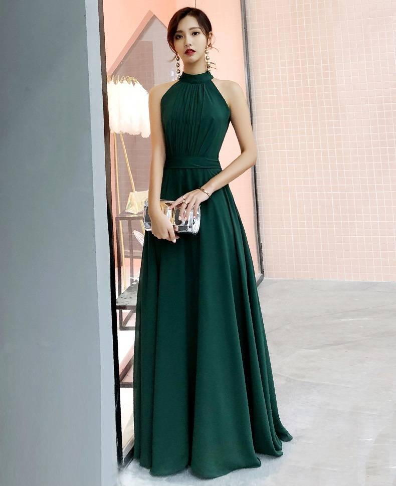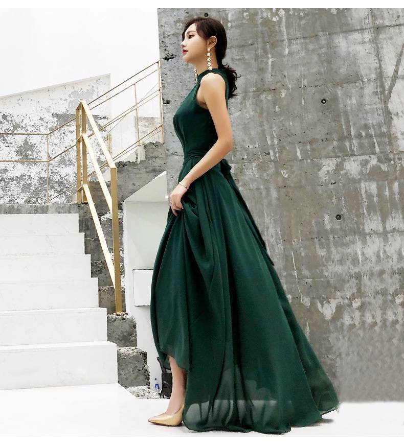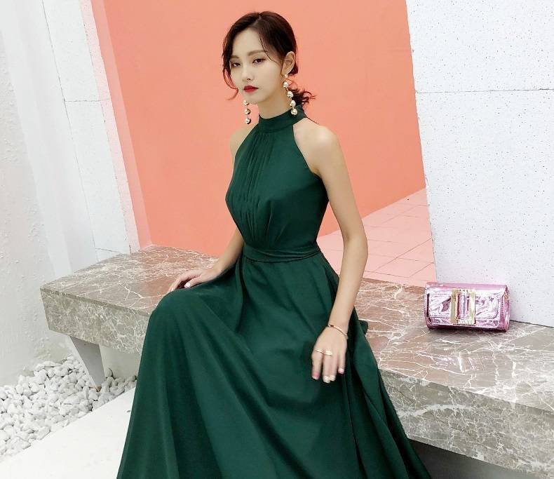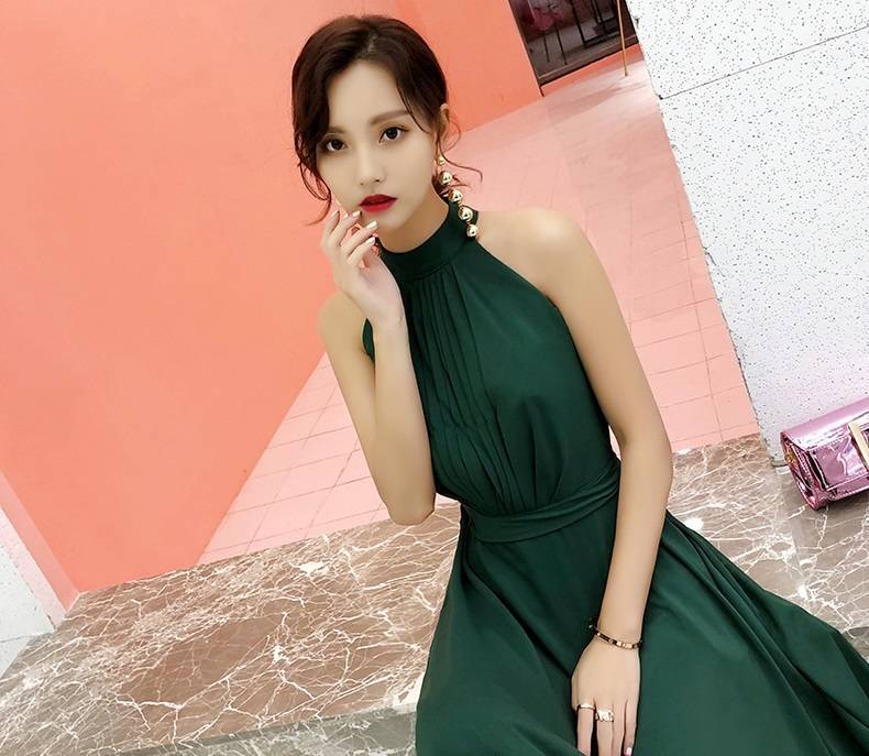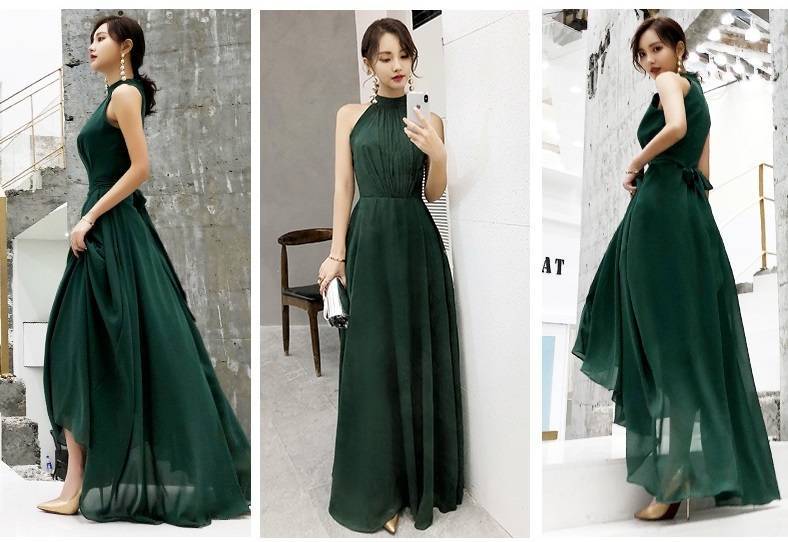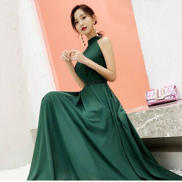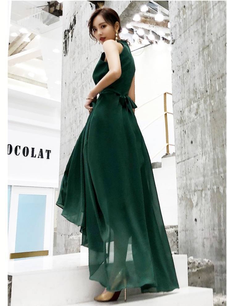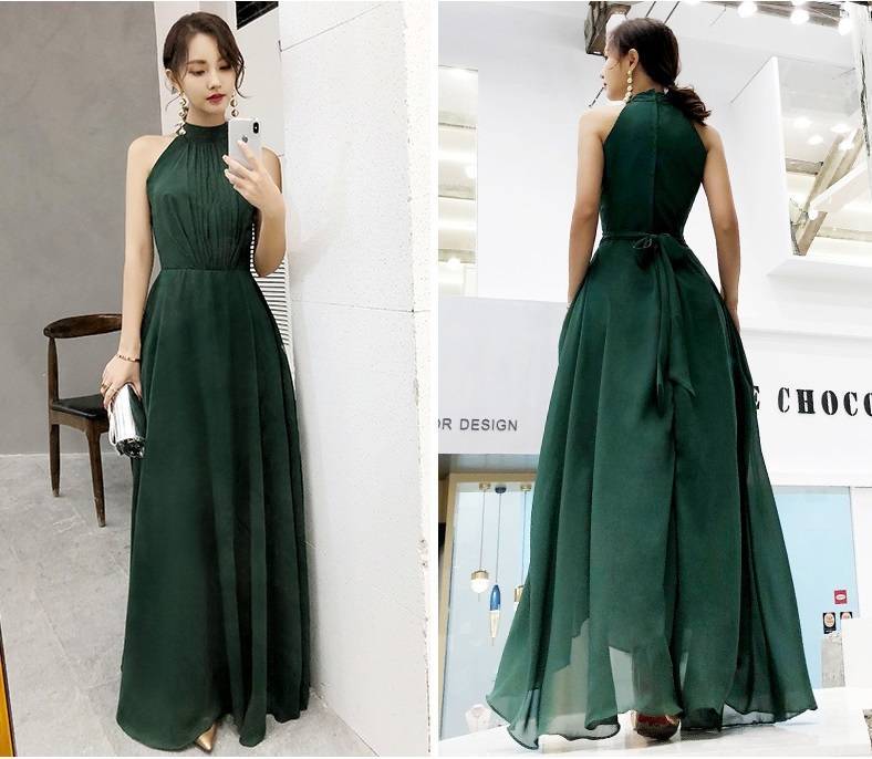 パーティードレス ロング ロングドレス 演奏会 ドレス 大きいサイズ 結婚式 お呼ばれドレス マキシ丈 グリーン バックリボン 可愛い 20代 ノースリーブ ホルターネッ 10代