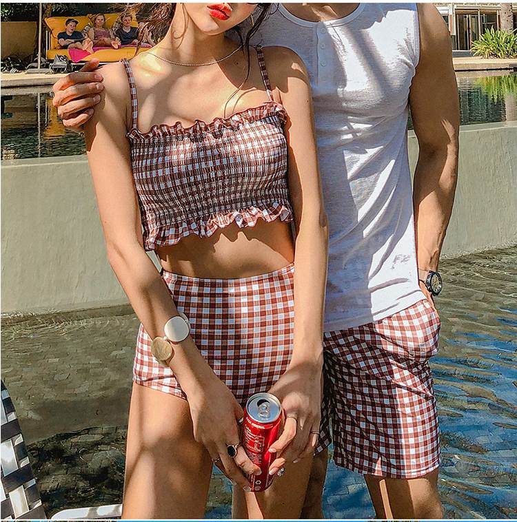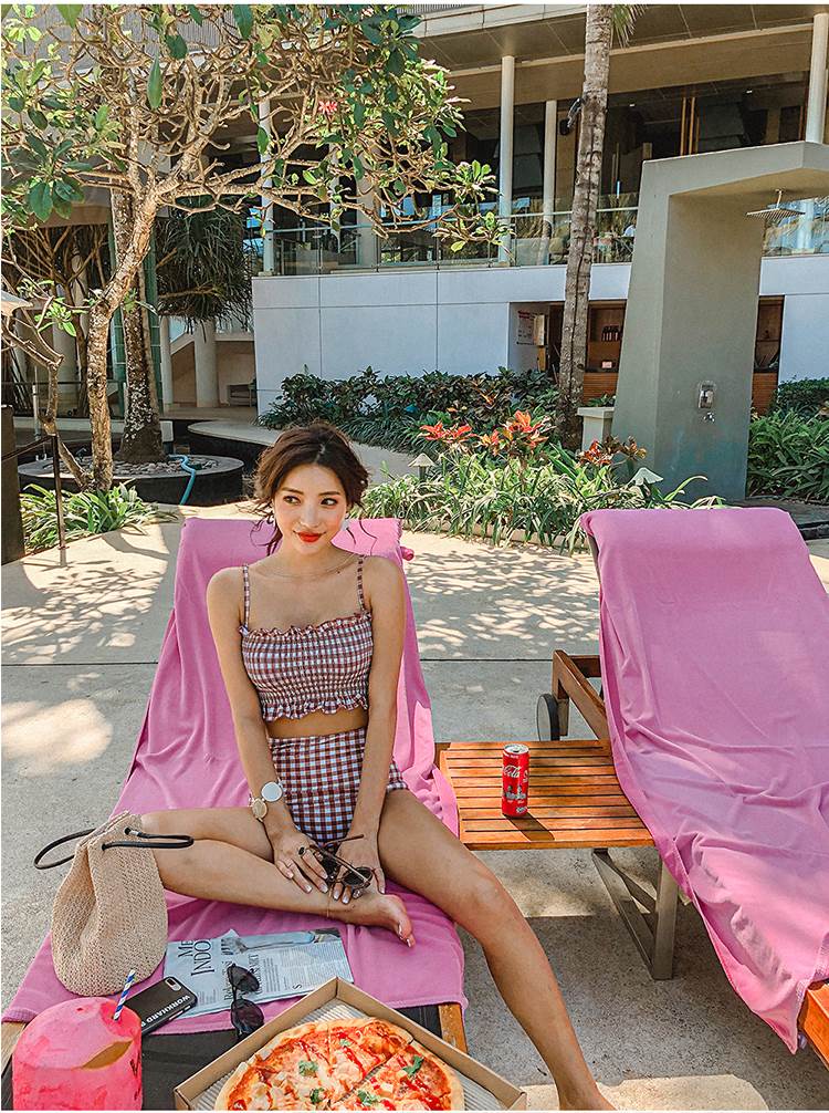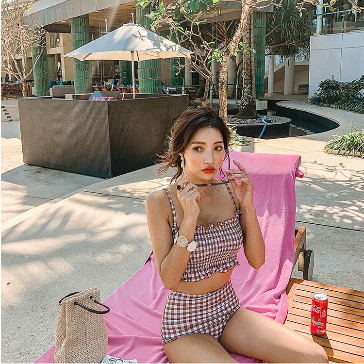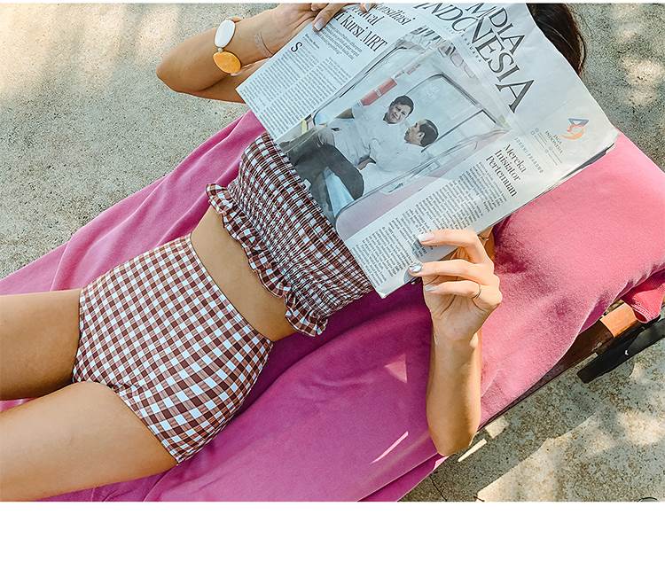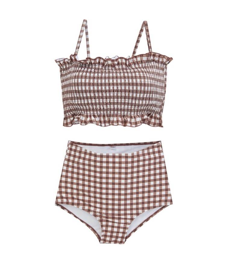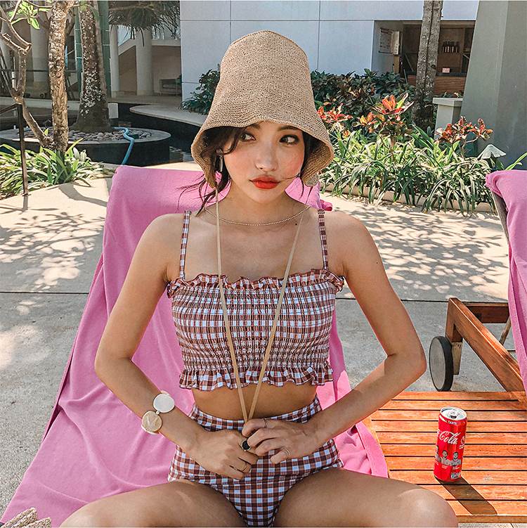 ビキニ 水着 レディース チェック柄 上下セット レトロ かわいい ベアトップ ハイウエスト キャミソール 格子柄 ギンガムチェック おしゃれ 個性的 ラブリー 韓国 海外 モデル セパレート