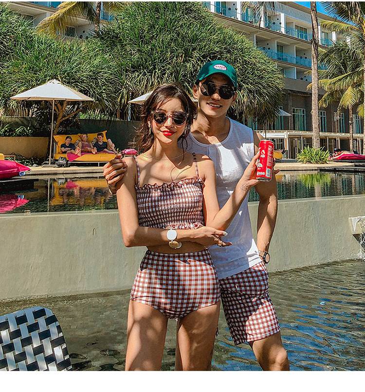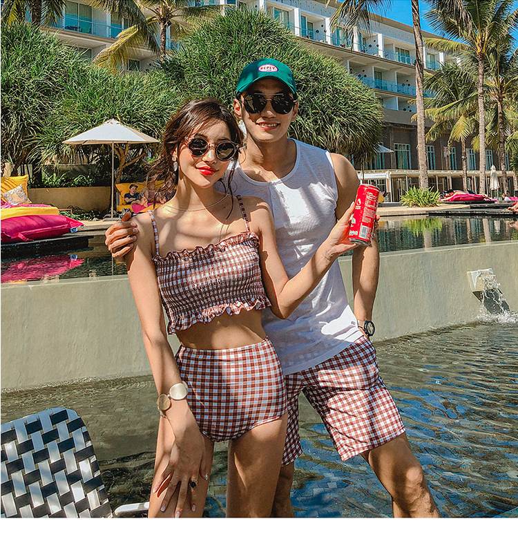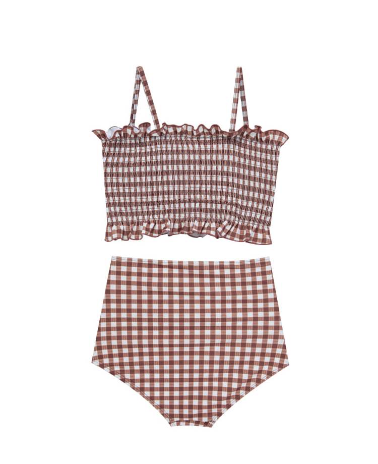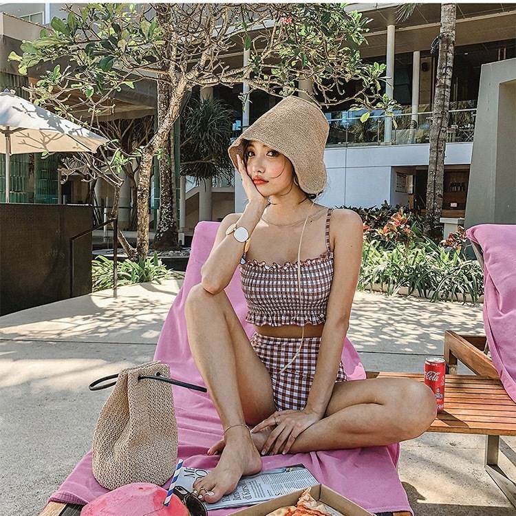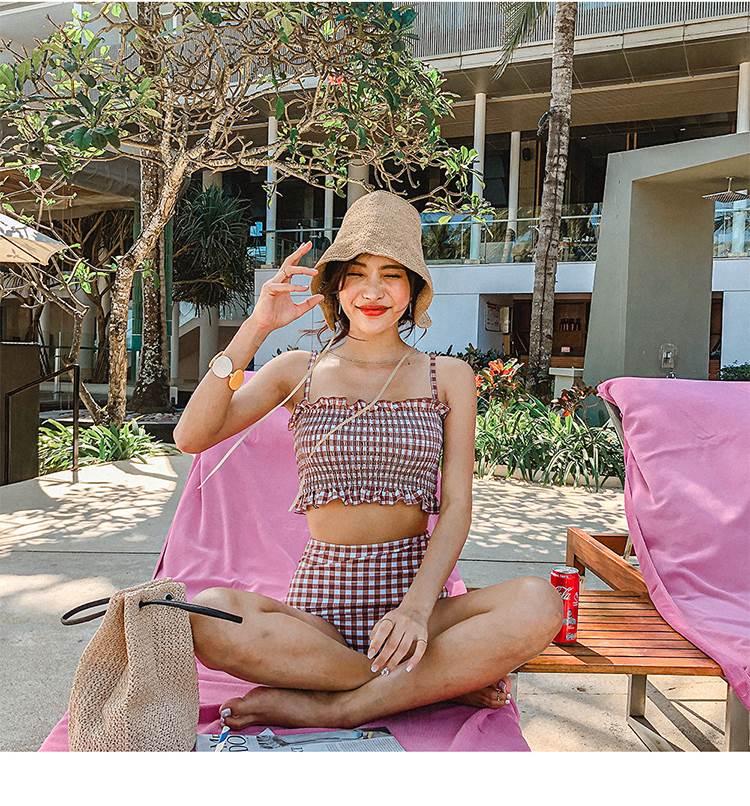 ビキニ 水着 レディース チェック柄 上下セット レトロ かわいい ベアトップ ハイウエスト キャミソール 格子柄 ギンガムチェック おしゃれ 個性的 ラブリー 韓国 海外 モデル セパレート