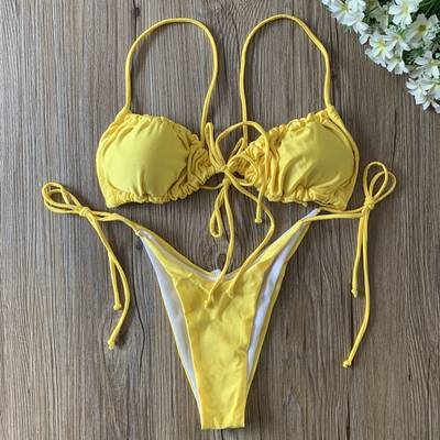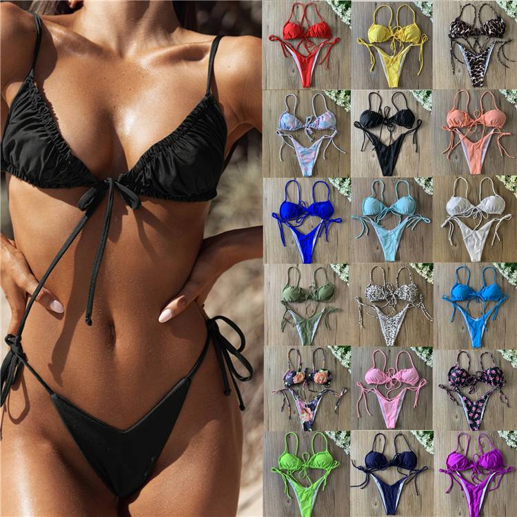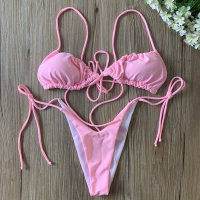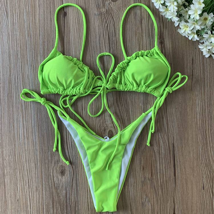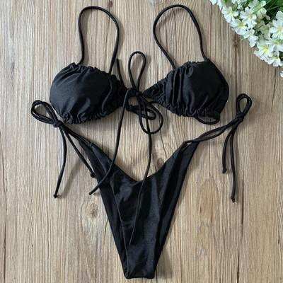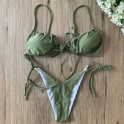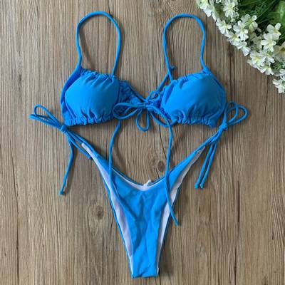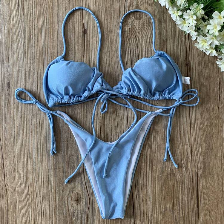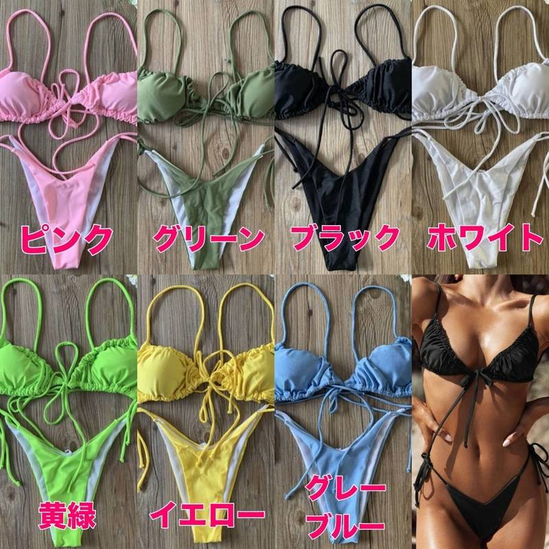 水着 ビキニ レディース セクシー 紐ビキニ ブラジリアン 三角 トライアングルビキニ ハイレグ Tバック風 無地 リボン ギャザー フリル sexy かっこいい 女の子 ヘルシー 大人
