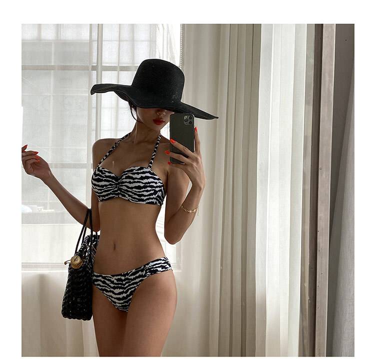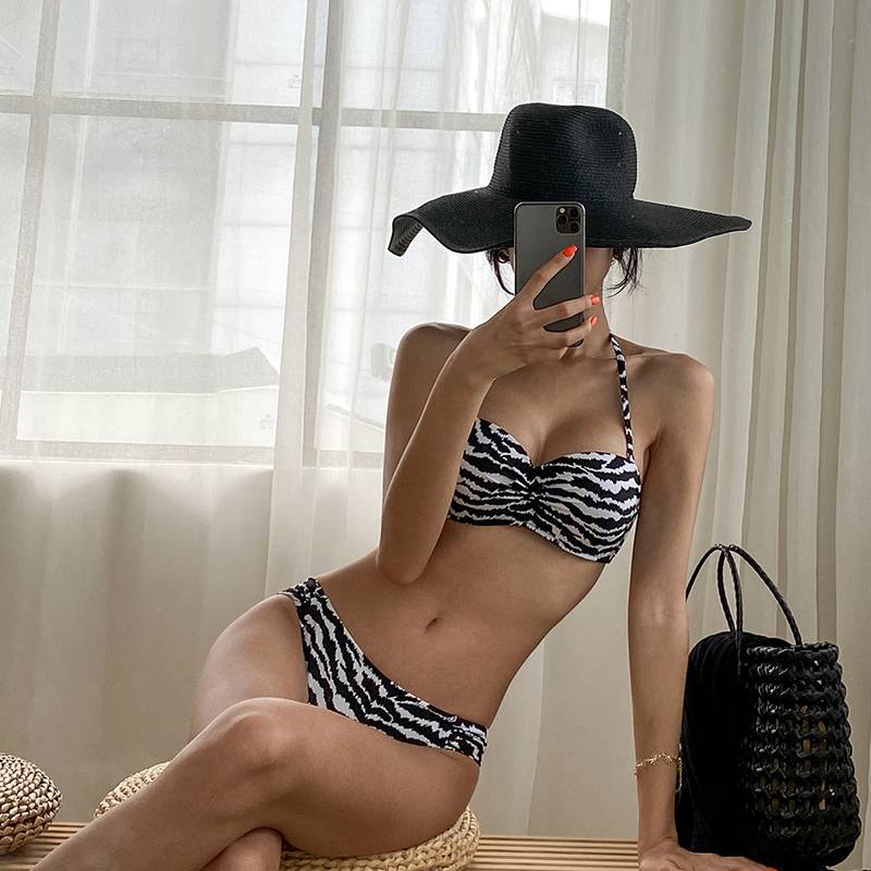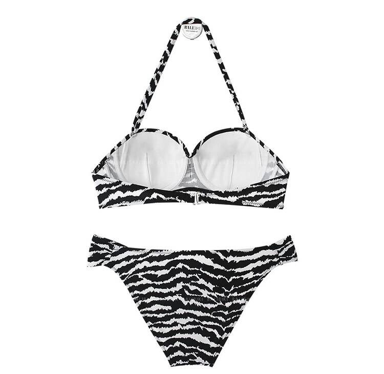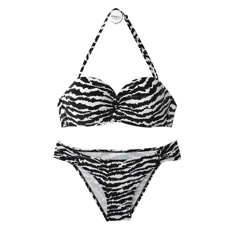 水着 ビキニ レディース ビキニ水着 セクシー かっこいい ベアトップ ゼブラ柄 チューブトップ風 大きいサイズ モノトーン ストライプ風 縞々 ホルターネック 大人可愛い 黒 シンプル 女の子 白