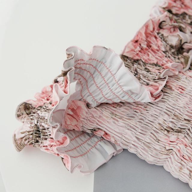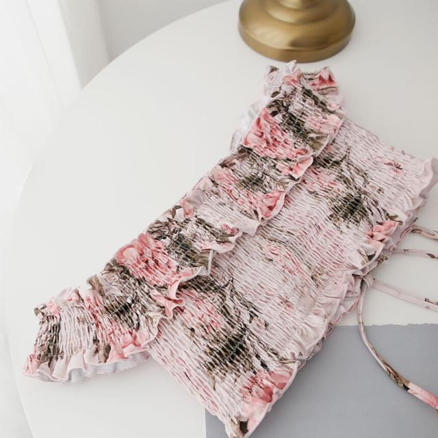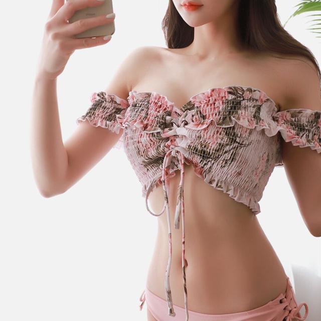 水着 ビキニ レディース 女の子 体系カバー かわいい セクシー きれいめ ビスチェ 上下セット バンドゥ 袖あり フリル 二の腕カバー 10代 20代 30代 黒 ピンク 無地 花 茶