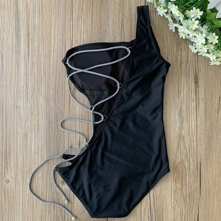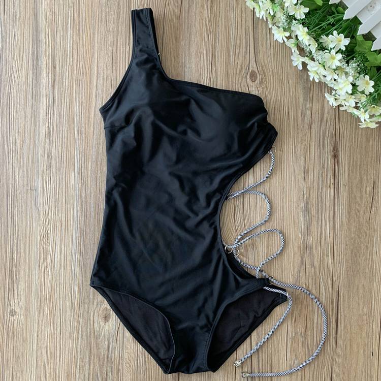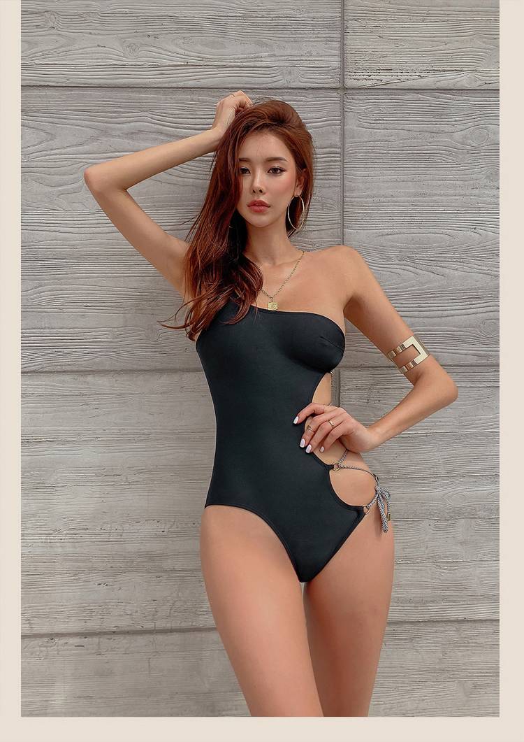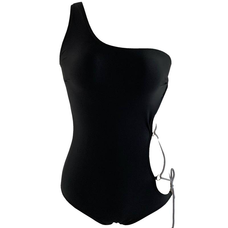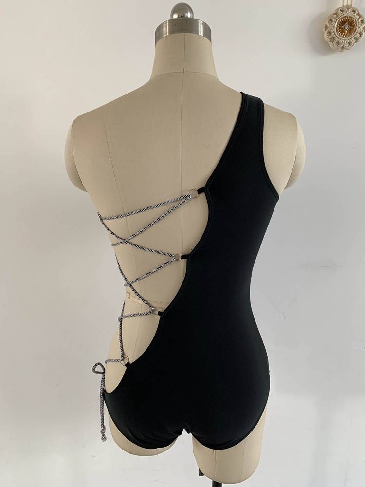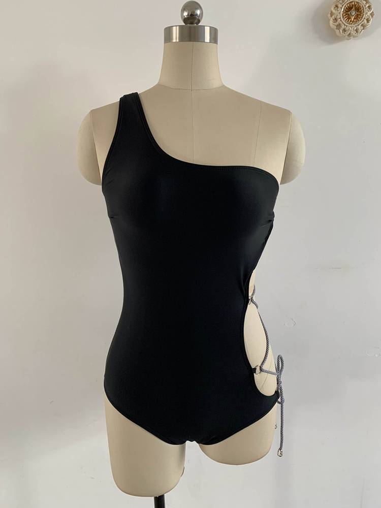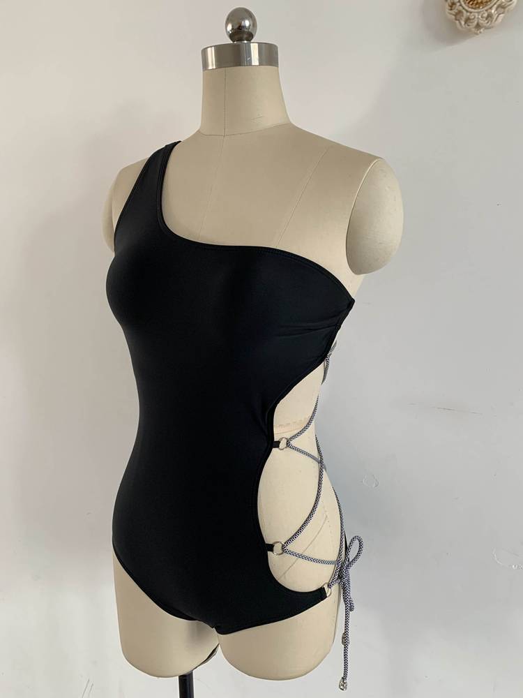 水着 ワンピース レディース ワンショルダー アシンメトリー セクシー 黒 無地 紐 ストラップ ハイレグ シンプル おしゃれ きれいめ かっこいい お姉さん ゴージャス 大人 シック ブラック