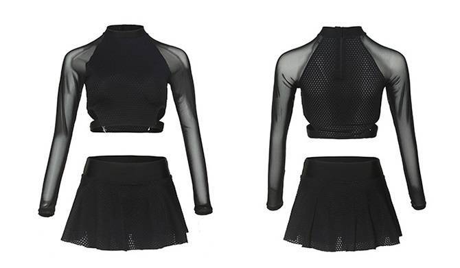 水着 セット ラッシュガード スポーツ水着 フィットネス 長袖 フレア スカート スポーティー ヘルシー UV対策 すけ感