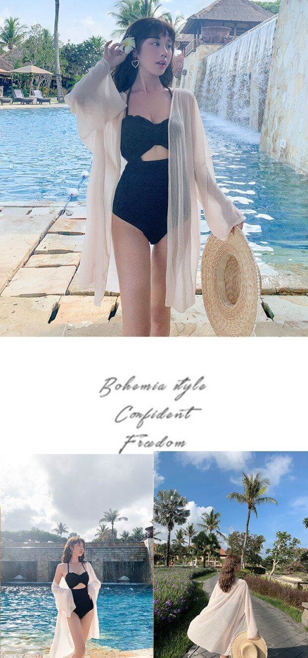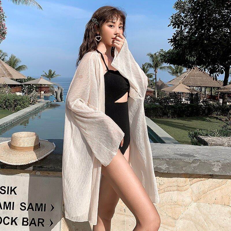 2色 薄手 トップス カーディガン 日焼け止め 水着 ブラウス セクシー ゆったり 透け感 長袖 白 ベージュ 日焼け防止 ビーチ ビキニブラウス シンプル リゾート エレガント 上品 きれい コーデ