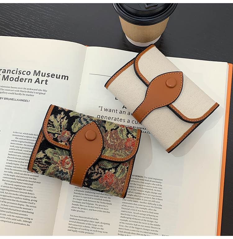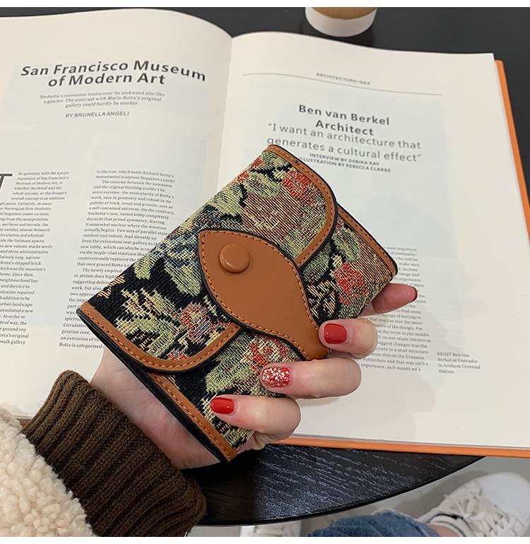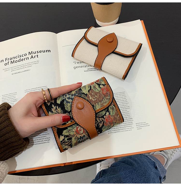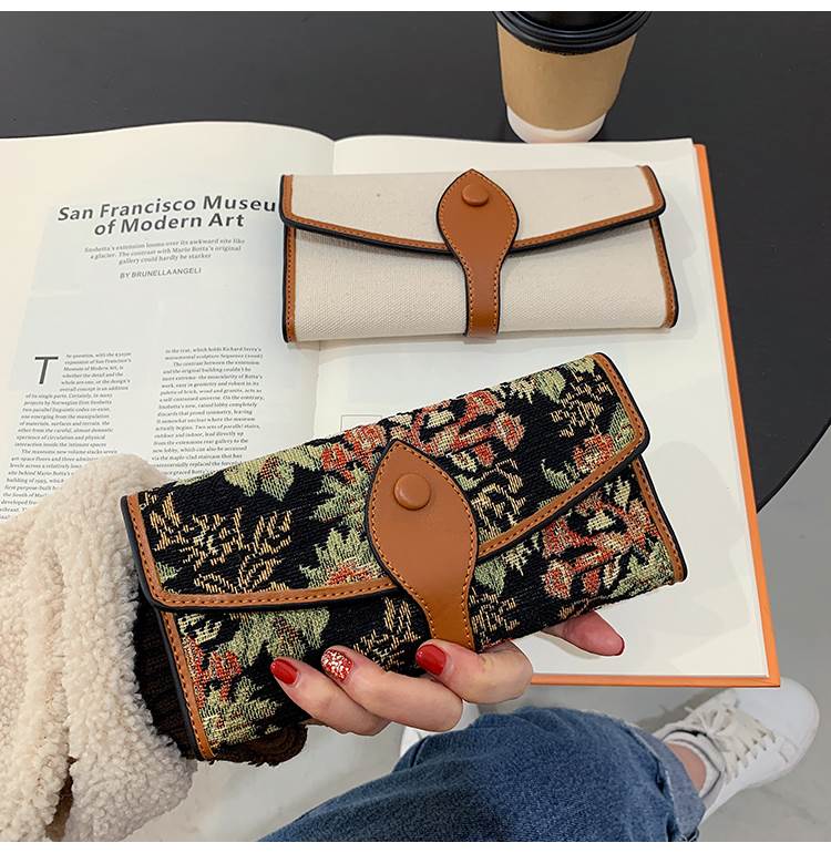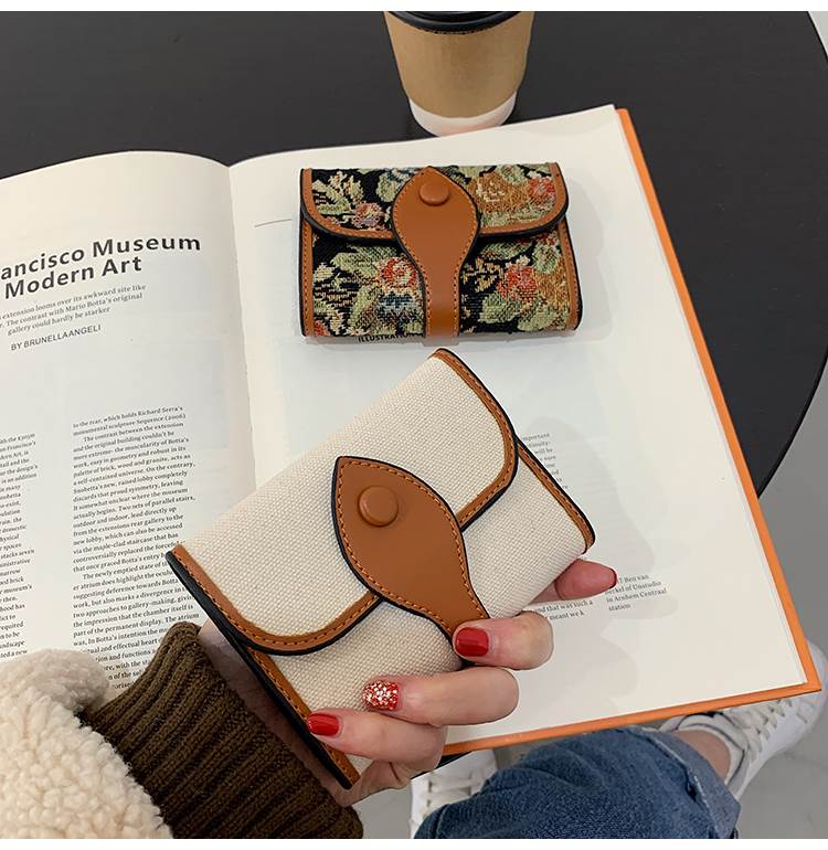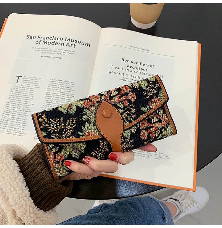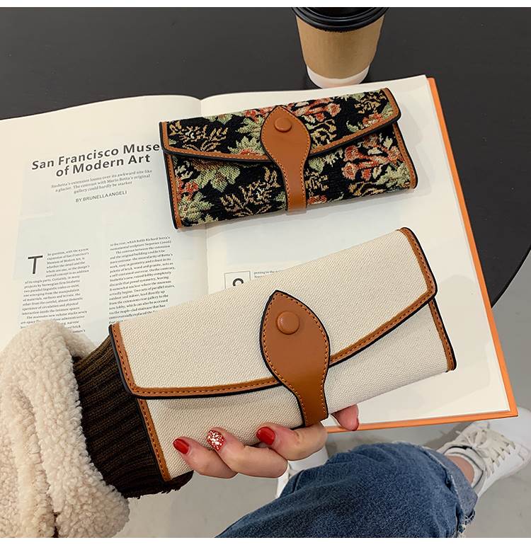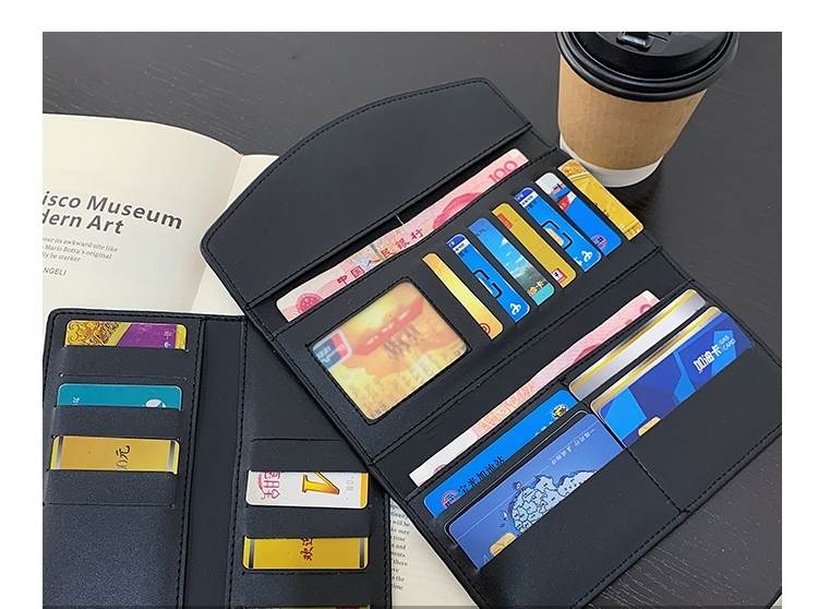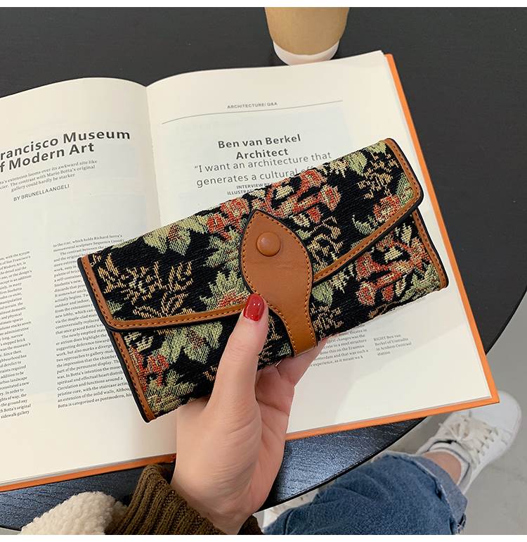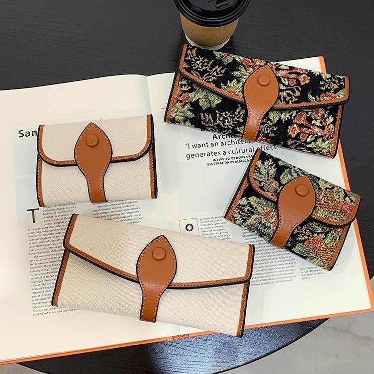2色 長財布 ミニ財布 折り畳み 三つ折り ロングウォレット ショート カードケース カード入れ キャッシュレス サイフ 花柄 無地 レトロ 使いやすい 機能性 便利 ブラック 黒 ホワイ カード収納