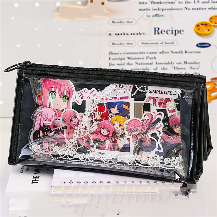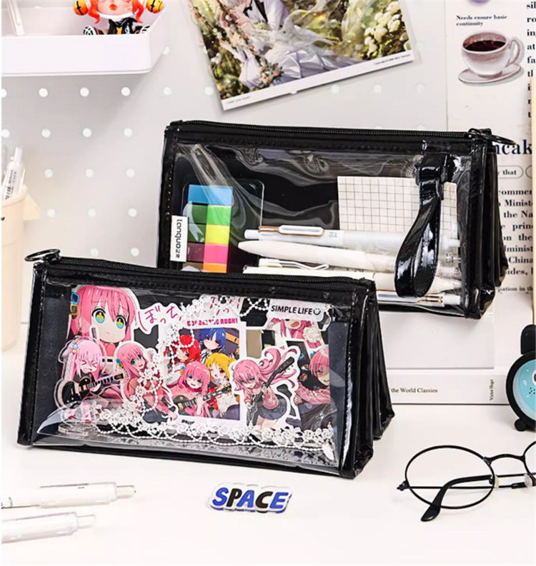 ペンケース 筆箱 推し筆箱 推し 痛ペンケース 痛バ 痛バッグ 缶バッジ入れ クリア 透明窓 両面透明窓 大容量 多機能 子供 小学生 中学生 高校生 大学生 学生 大人 缶バッチ おしゃれ 社会人