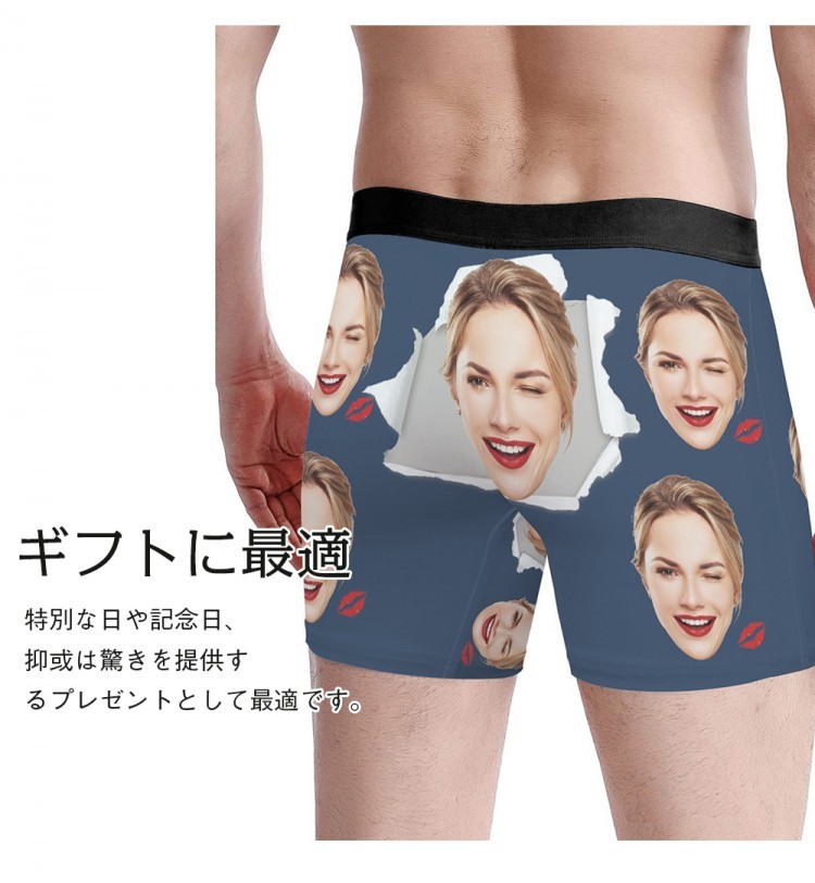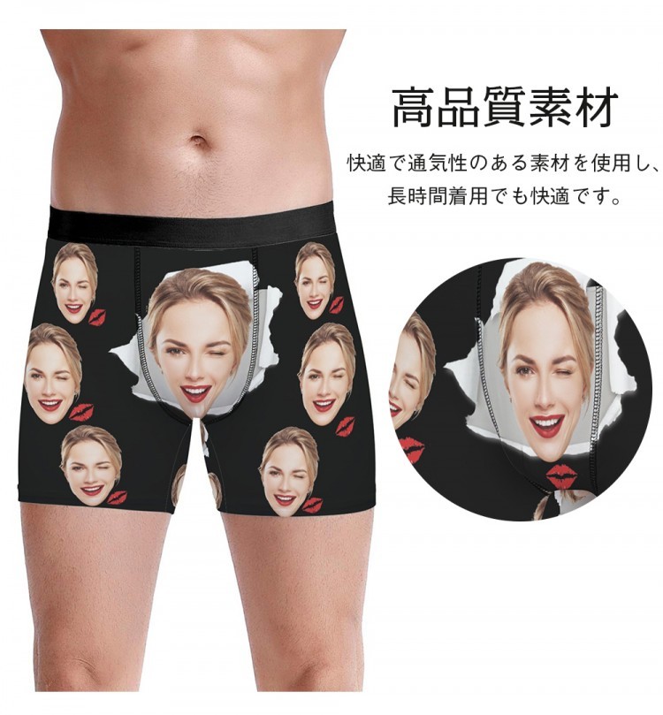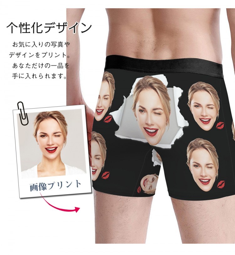 写真入りオーダーメイドスポーツショーツ ユニセックス インナー 下着 豊富 ホワイト ブラック ブルー パープル L XL 2XL 3XL S M