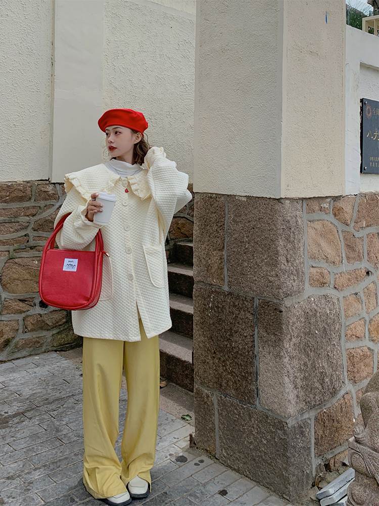 甘くてガーリーなスタイルのキャンディーカラーのコートです♪
