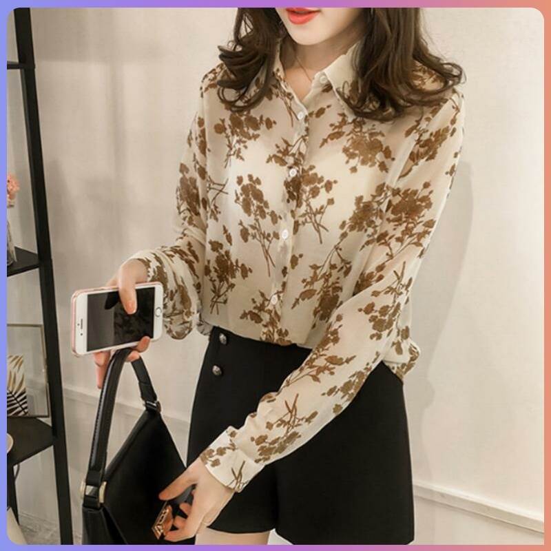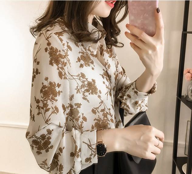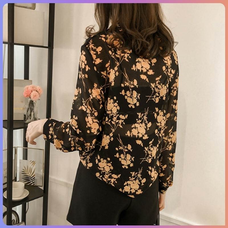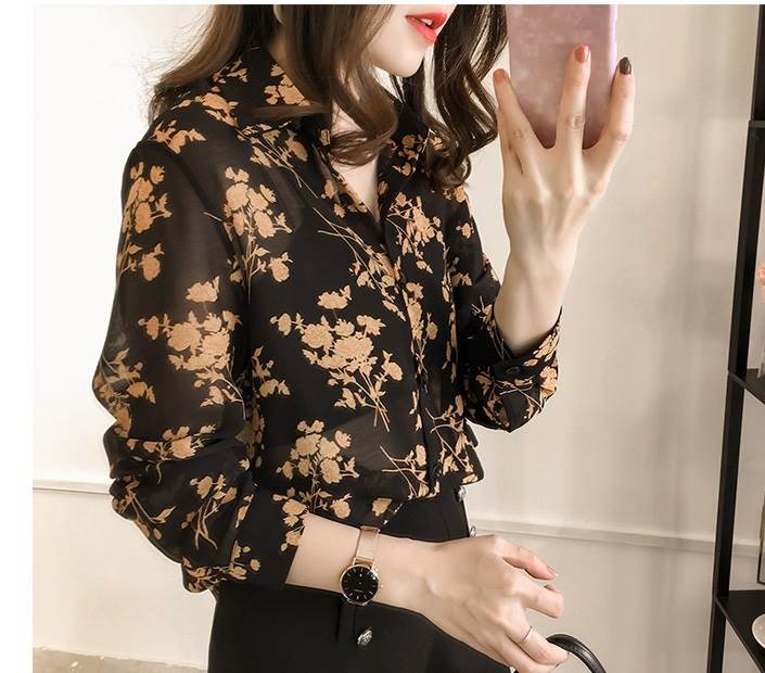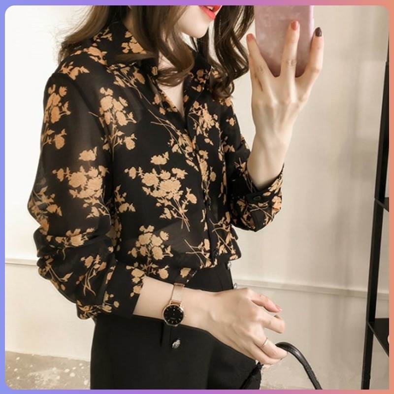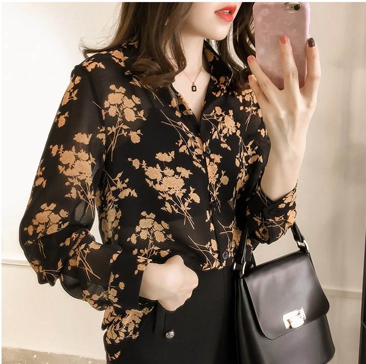 3色 シャツ ブラウス 花柄 黒 白 長袖 ラフ ゆったり 大人可愛い 上品 春 夏 トップス レディース 小花 フラワー シック かっこいい ホワイト ブルー 青 大きいサイズ X ブラック