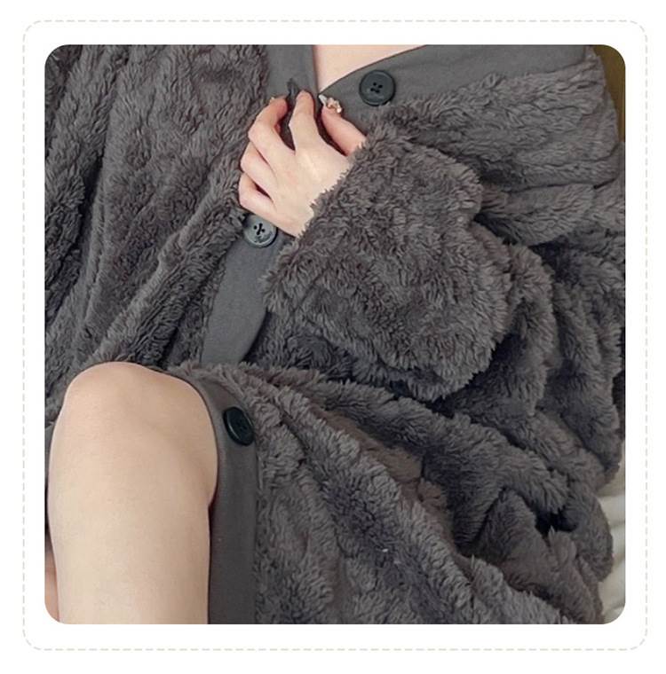 2色 もこもこ ルームウェア パジャマ 着る毛布 部屋着 お家コーデ ふわふわ モコモコ 秋 冬 ナイトウェア ガウン かわいい キュート ラブリー ガーリー 甘め 女の子 前開き ボタン レディース